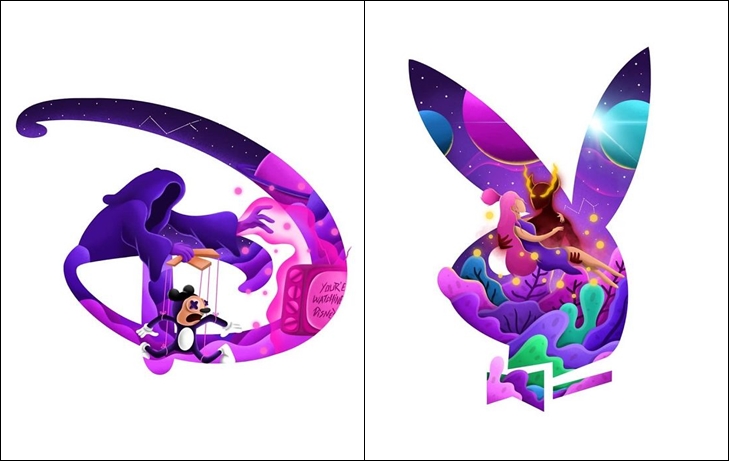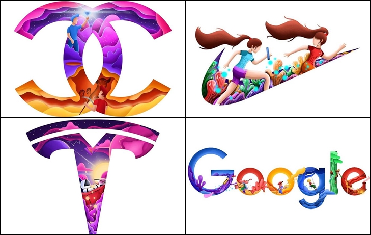 그리고 이런 로고 디자인에 매력을 느낀 한 아티스트가 있습니다. 바로 캐나다 출신의 데이비드 휴인(David Huynh)입니다. 그는 단순한 브랜드의 로고에 회사가 지낸 테마를 포함시켜 일러스트를 그려 자신만의 로고 해석을 선보였습니다.