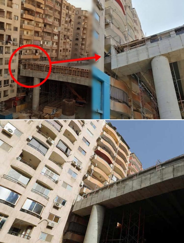 사진에 보이는 고속도로는 킹 살만 액시스라고 불리는 프로젝트 중 일부입니다. 그러나 이 고속도로가 지나가는 곳에 사람들이 실제로 살고 있는 아파트가 너무 가까이 있어 주민들의 비난이 폭주하고 있는 상황입니다. 이 아파트는 카이로 기자지구의 알옴라니야 지역에 있는데요 실제로 거의 붙어있는 것 같은 고속도로와 아파트는 약 50cm가량 떨어져 있습니다. 즉 아파트에서 문을 열고 손을 뻗으면 고속도로를 만질 수 있다는 뜻입니다. 매연으로 인한 공해는 말할 것도 없이 공사로 인해 저층에는 햇빛이 들어오지 않을 것으로 보입니다. 또한 발코니에서 고속도로로 바로 올라갈 수 도 있을 것으로 보여 안전 문제도 제기되고 있습니다. 또한 차가 지나다니는 소음으로 인한 스트레스도 클 것 같네요.