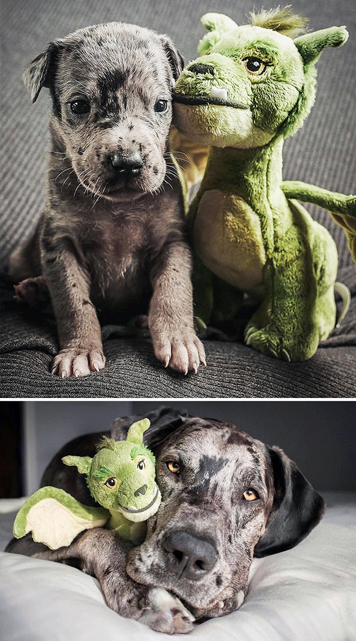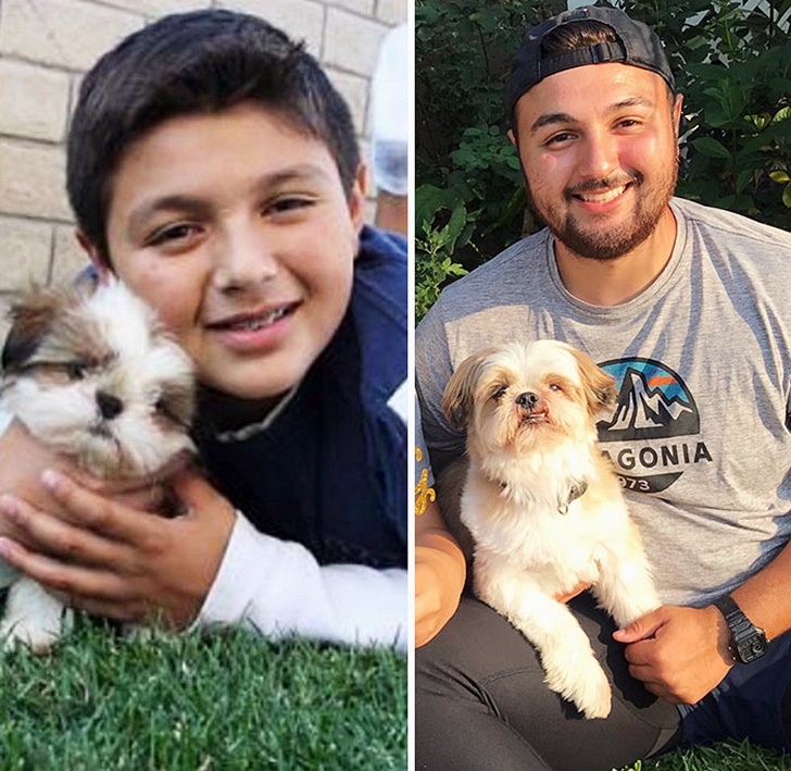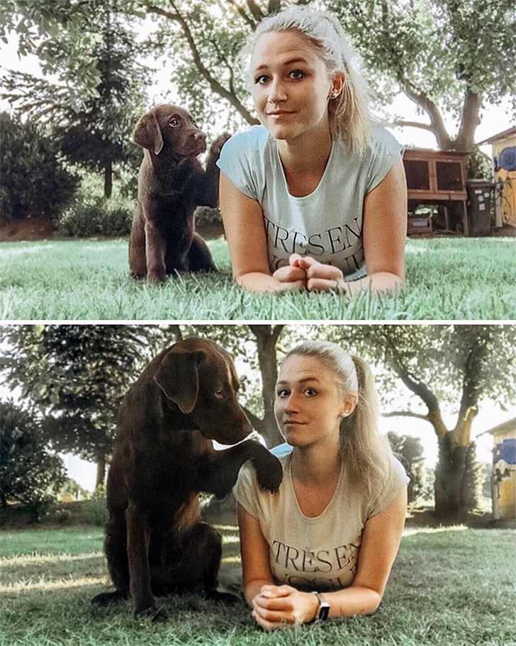 오늘은 이 사실을 잘 보여주는 사진을 소개할 텐데요. 바로 강아지의 어릴 적 모습과 큰 후의 모습을 비교하는 사진입니다. 이들의 성장, 그럼에도 변치 않는 주인과의 우정이 뭉클한 사진을 함께 만나보겠습니다.