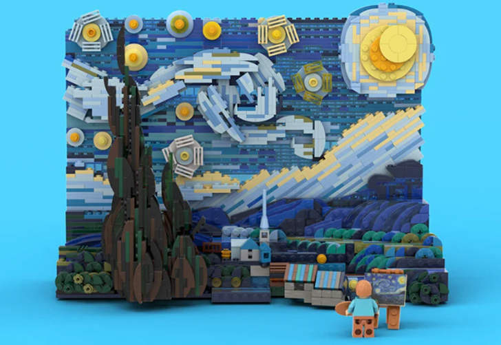 트루먼 청은 어느 날 레고 부품을 가지고 놀던 중 자신이 생각 없이 쌓은 레고 블럭이 반 고흐의 상징적인 붓놀림과 많이 닮았다는 것을 깨달았다고 합니다. 이후 반 고흐의 그림을 레고로 재현하기 위해 레고의 다양한 블럭을 창의적으로 사용했죠. 이 세트는 1,552개의 블럭으로 구성되어 있는데요.