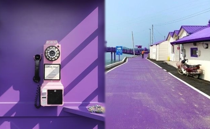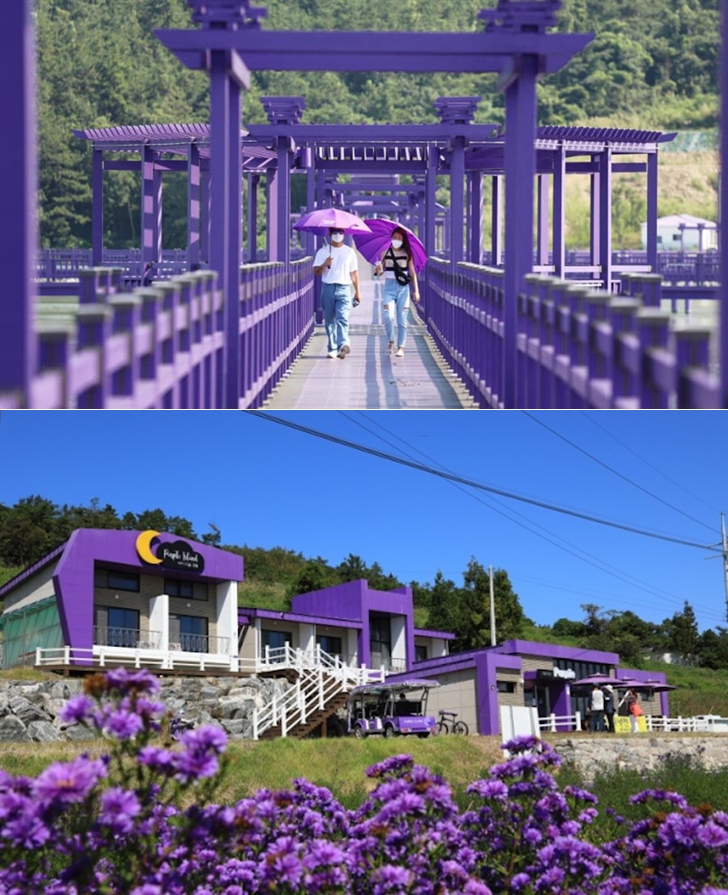 이곳은 아직 많은 사람들에게 잘 알려진 관광지는 아닙니다. 새롭게 조성한 곳이기 때문이죠. 전라남도에서는 지난 해 8월 반월도와 박지도를 퍼플 섬으로 선포했는데요. 총 68억 원을 들여 400개의 지붕, 전화박스, 카페, 호텔, 식당 등 모든 건물을 보라색으로 칠했습니다.