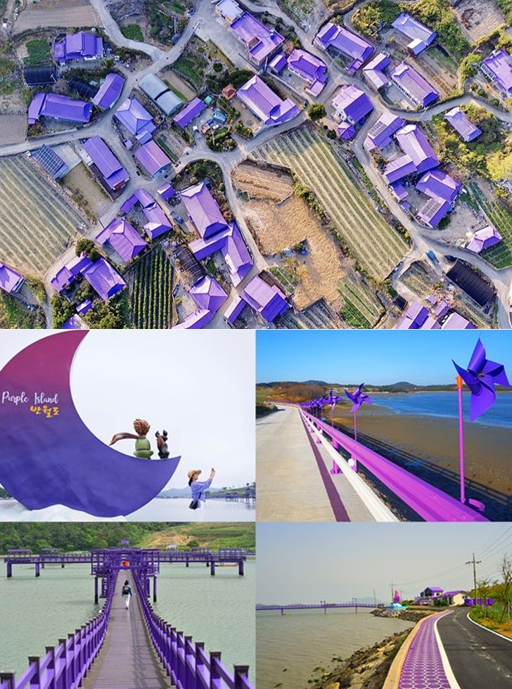 포카리스웨트 촬영지로도 유명한 그리스의 산토리니 섬을 아시나요? 산토리니는 파란색, 그리고 하얀색 건물들로 이루어진 곳으로 색상 자체가 이곳의 트레이드 마크가 되었습니다. 한국에도 산토리니와 같이 '색상'을 테마로 관광지를 조성한 곳이 있는데요. 바로 전라남도 신안군에 있는 반월도, 그리고 박지도입니다. 그리고 이곳에는 '보랏빛 섬' '퍼플섬'이라는 이름을 붙여 보라색 컬러를 메인 테마로 하고 있습니다.