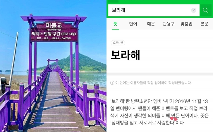 특히 이곳에는 'I PURPLE YOU(아이 퍼플 유)'라는 문구를 활용해 다양한 볼거리를 조성했는데요. 이 문구는 우리나라의 K팝 대표 가수인 방탄소년단의 멤버 '뷔'가 만들어낸 신조어로 'I LOVE YOU'라는 의미를 지니고 있습니다. 뷔는 이 문구에 대해 '일곱 빛깔 무지개의 마지막 색이 보라색인 만큼 상대방을 끝까지 믿고 함께 사랑하자'는 의미라고 밝히기도 했는데요. 이후 '보라해'라는 말은 방탄소년단과 아미의 끈끈한 사랑과 믿음의 상징으로 자리 잡았죠. 이에 많은 해외 아미들은 이곳을 꼭 한 번 방문하고 싶다는 의견입니다.