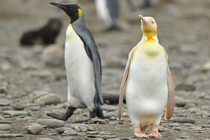 이브 아담스는 남대서양의 남서부에 있는 영국령의 섬인 사우스조지아섬에 갔는데요. 그는 현재 존재하는 펭귄 중 두 번째로 몸집이 큰 킹펭귄(임금펭귄, 왕펭귄) 무리를 보게 되었습니다. 펭귄떼는 정말로 감동적이었는데요. 이에 카메라 셔터는 쉴 틈이 없었죠. 그러나 펭귄을 촬영하던 중 그는 지금까지 한 번도 보지 못했던 것을 보게 되었습니다. 바로 노란색 펭귄이었습니다.