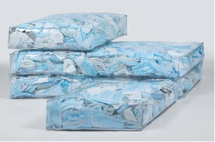 그는 이 프로젝트를 위해 이탈리아 동북부에 위치하고 있는 작은 마을인 페르기네 발수가나의 주민들과 힘을 합쳤습니다. 그는 주민들에게 길거리에서 마스크를 '안전하게' 모아달라고 부탁했고, 엄청난 양의 마스크가 단기간에 모였죠. 그는 오존을 이용해 마스크를 살균 소독한 이후 이를 마치 솜처럼 PVC 카우치 안에 넣었죠. 마스크는 대부분 하늘색이었기에 마치 이 작품은 빙하처럼 보이기도 했는데요. 그는 이 작품으로 '지구온난화'의 상징까지 만들어내며 여러 가지 환경 오염 문제를 고발하고 있습니다.