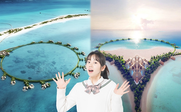 이 리조트는 움마핫 알샤이크 섬에 지어지는 것입니다. 이에 '움마핫 알샤이크 호텔 12'라는 가칭이 붙여져 있습니다. 이 리조트를 디자인한 곳은 바로 '포스터 앤 파트너스(Foster + Partners)'인데요. 이 건축 설계 회사는 유명한 건축가 노먼 포스터가 창립한 것으로 HSBC 홍콩 본점 빌딩, 홍콩 국제공항, 런던 밀레니엄 브릿지, 런던에서 가장 유명한 건물인 오이타워 등을 설계하며 명성을 쌓은 회사입니다. 포스터 앤 파트너스에서는 반지 모양의 리조트 디자인을 공개했는데요. 반지의 스톤에 해당하는 곳에는 리셉션과 식당 등을 배치해두고, 원형의 산책로를 따라 워터 방갈로를 하나씩 배치해두었습니다.