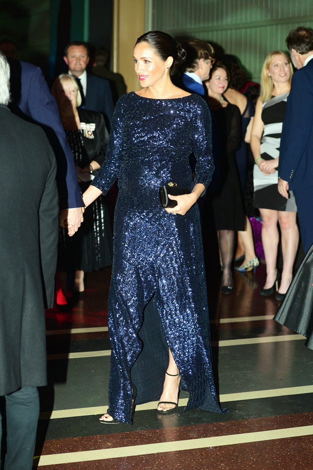 H&M 드레스를 입은 날 저녁, 그녀는 고가의 드레스로 옷을 바꿔 입었는데요. 이 네이비 색상의 스파클링 들스는 5,595 달러로 롤랑뮤레의 제품입니다.