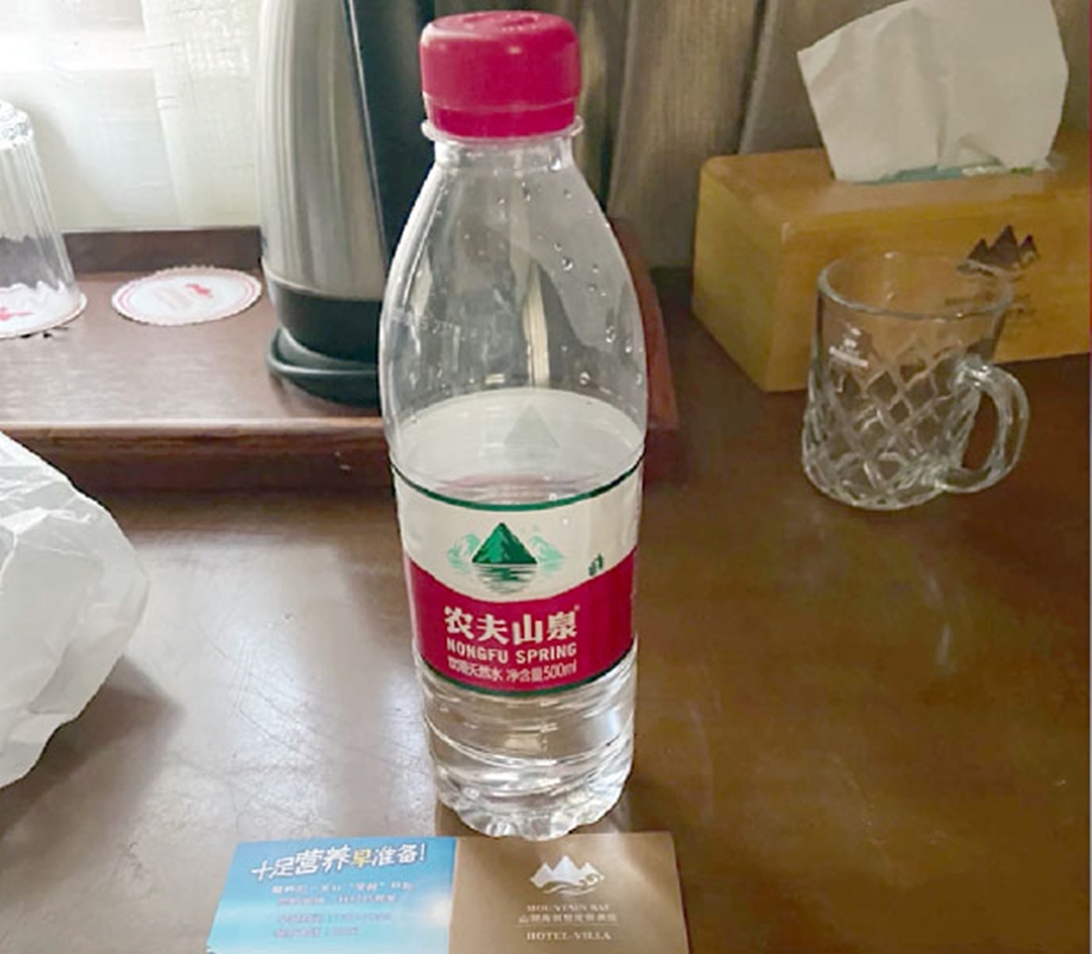 뤼씨의 방 옆에는 뤼씨의 장모님이 머물고 계셨다고 합니다. 그러다 장모님은 오후가 되어 뤼씨의 방에 놀러 왔고, 목이 마르다며 방 책상에 놓인 생수의 뚜껑을 열고 물을 마셨죠. 그러나 뤼씨 장모님은 생수에서 이상한 맛과 냄새를 느꼈고, 이에 다른 가족들이 이 생수의 냄새를 맡아보고 맛을 보았는데요. 이들은 이구동성으로 소독약 냄새가 난다고 주장했습니다. 다른 가족들은 테이블에 있던 다른 생수도 마셔봤는데요. 다른 생수에는 이상이 없었습니다. 뤼씨는 '장모님이 생수를 마시기 전 뚜껑은 닫혀있었고, 물은 가득 차 있었다'면서 '생수의 뚜껑 개봉 여부는 불분명하지만 생수병 겉모양은 새 것 이었다'고 말했습니다.