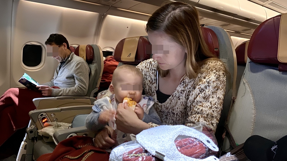 5. 아기를 머리 위 짐칸에 넣은 승객