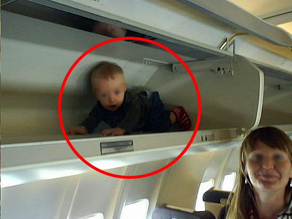 5. 아기를 머리 위 짐칸에 넣은 승객