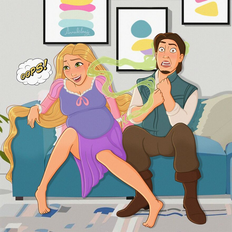 오늘 RedFriday에서 소개할 작품도 디즈니 캐릭터를 활용한 것입니다. 바로 애너벨이라는 이름으로 활동하고 있는 안나 벨렌스키(Anna Belenskiy)입니다. 안나 벨렌스키는 프리랜서 디지털 아티스트로 활동하고 있는데요. 얼마 전 생애 첫 임신을 경험했습니다. 그녀는 자신이 임신을 하며 겪었던 소소한 변화들과 일들을 팔로워들과 함께 나누기로 결심했고, 이에 임산부의 일상을 그려보았죠. 그리고 애너벨이 이용한 것은 디즈니 공주들이었습니다. 과연 디즈니 공주들이 임신을 하면 어떤 모습일지 함께 만나볼까요?