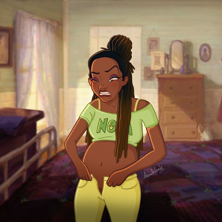 오늘 RedFriday에서 소개할 작품도 디즈니 캐릭터를 활용한 것입니다. 바로 애너벨이라는 이름으로 활동하고 있는 안나 벨렌스키(Anna Belenskiy)입니다. 안나 벨렌스키는 프리랜서 디지털 아티스트로 활동하고 있는데요. 얼마 전 생애 첫 임신을 경험했습니다. 그녀는 자신이 임신을 하며 겪었던 소소한 변화들과 일들을 팔로워들과 함께 나누기로 결심했고, 이에 임산부의 일상을 그려보았죠. 그리고 애너벨이 이용한 것은 디즈니 공주들이었습니다. 과연 디즈니 공주들이 임신을 하면 어떤 모습일지 함께 만나볼까요?
