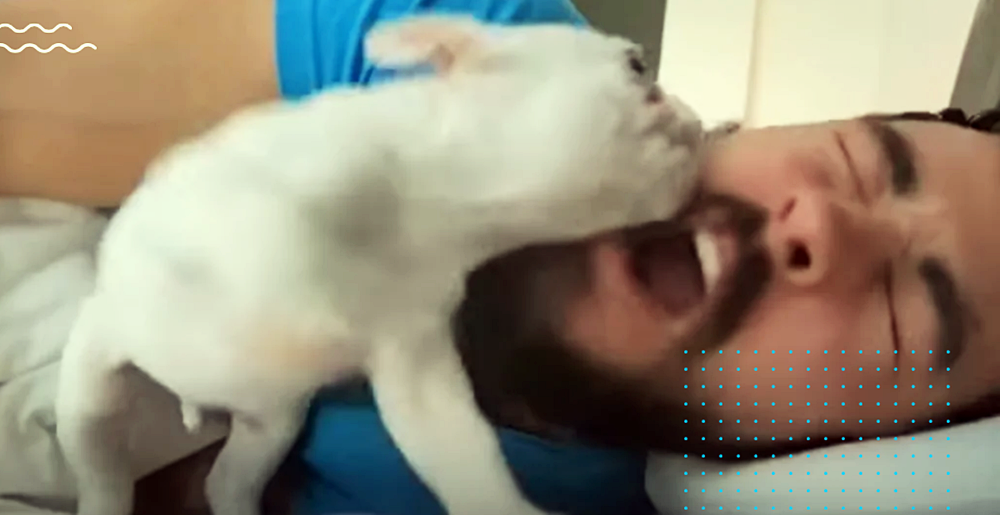 아침에 어떻게 잠에서 깨시나요? 시끄러운 알람 소리를 들으며 불쾌한 아침을 시작하시지는 않나요? 10분 뒤 울리고 또 울리는 알람으로 인해 일어날 수 밖에 없지만 하루의 시작은 그리 상쾌할 것 같지 않습니다. 그러나 얼마 전 그 누구보다도 행복하게 아침을 맞이하는 한 남성의 영상이 화제가 되고 있습니다. 바로 핏불 프렌치(Frenchy)를 키우는 션 사란토스(Sean Sarantos)라는 이름의 남성입니다.