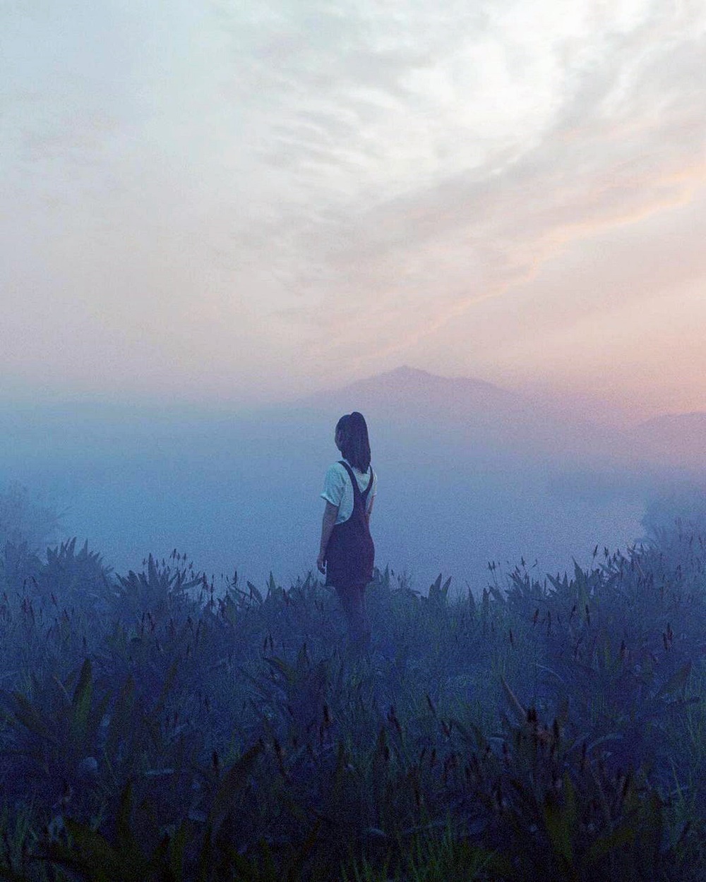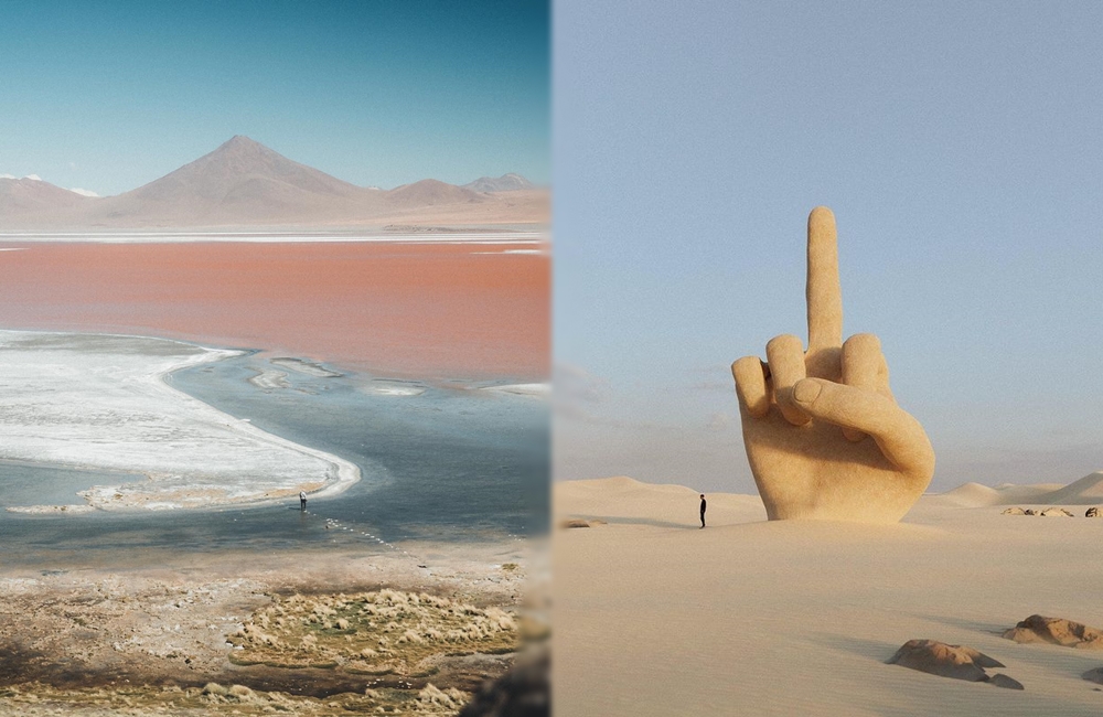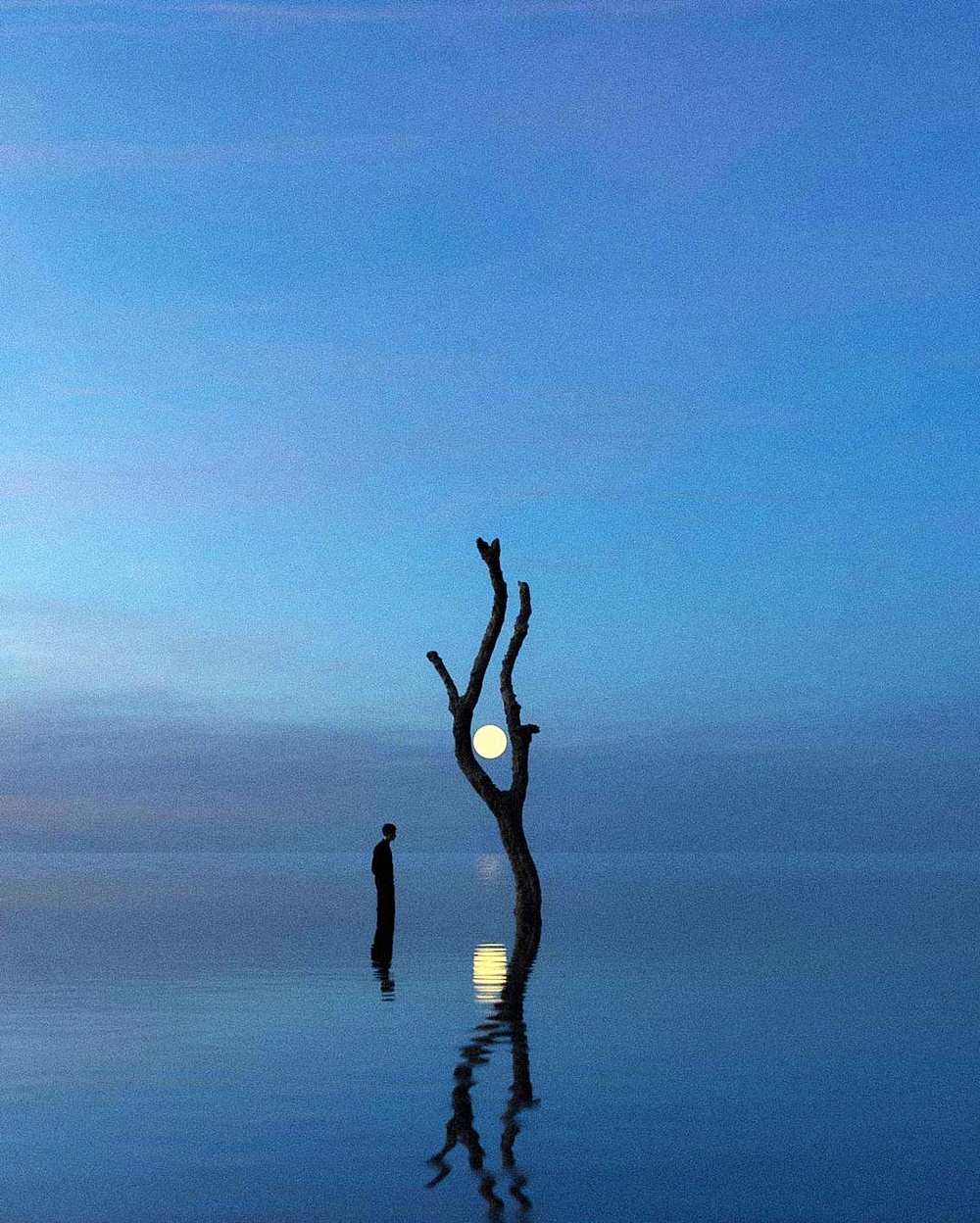 그의 작품에는 대부분 사람의 실루엣이 등장하곤 합니다. 사진 속 사람은 대부분 등을 보이거나 실루엣만 보이고 있으며, 혼자 등장하곤 하는데요. 인간의 본질적인 외로움과 낯선곳에 처한 이 등장인물의 당황스러움과 동시에 이 상황을 오롯이 즐기고 있는 듯한 모습을 보여주고 있습니다. 그의 사진 작품은 매우 몽환적인 느낌이지만 실제로 존재하는 곳에서 찍은 것이라고 하는데요. 평범한 사진 한 장으로 수많은 추측을 가능하게 하며 이에 그의 사진은 '예술작품'이라 불러도 손색없을 것 같네요.