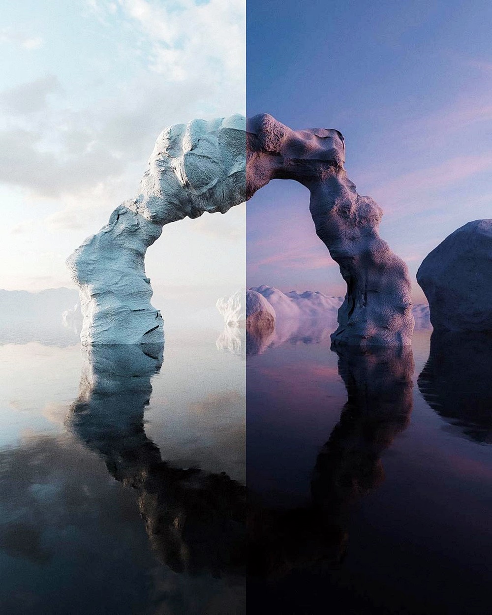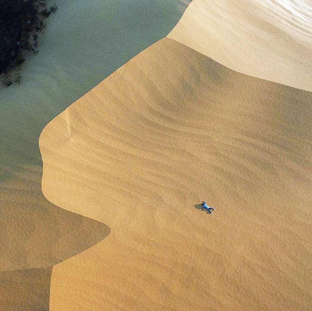 그의 작품에는 대부분 사람의 실루엣이 등장하곤 합니다. 사진 속 사람은 대부분 등을 보이거나 실루엣만 보이고 있으며, 혼자 등장하곤 하는데요. 인간의 본질적인 외로움과 낯선곳에 처한 이 등장인물의 당황스러움과 동시에 이 상황을 오롯이 즐기고 있는 듯한 모습을 보여주고 있습니다. 그의 사진 작품은 매우 몽환적인 느낌이지만 실제로 존재하는 곳에서 찍은 것이라고 하는데요. 평범한 사진 한 장으로 수많은 추측을 가능하게 하며 이에 그의 사진은 '예술작품'이라 불러도 손색없을 것 같네요.