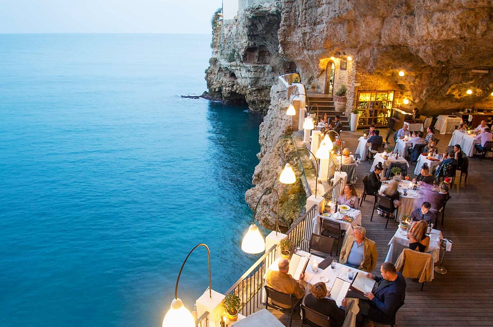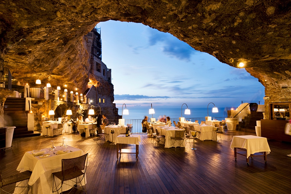 이탈리아는 멋진 건축물들과 자연으로 유명합니다. 그리고 이 둘이 절묘하게 조화를 이룬 식당이 있죠. 바로 이탈리아의 폴리냐노 아 마레에 위치한 '그로토 팔라쩨세(Grotto Palazzese)'입니다. 이곳에서 사람들은 천연 암석 지붕에 둘러싸여 바다를 바라보며 식사를 할 수 있는데요. 로맨틱하면서도 잊을 수 없는 경험이 될 것 같네요.
