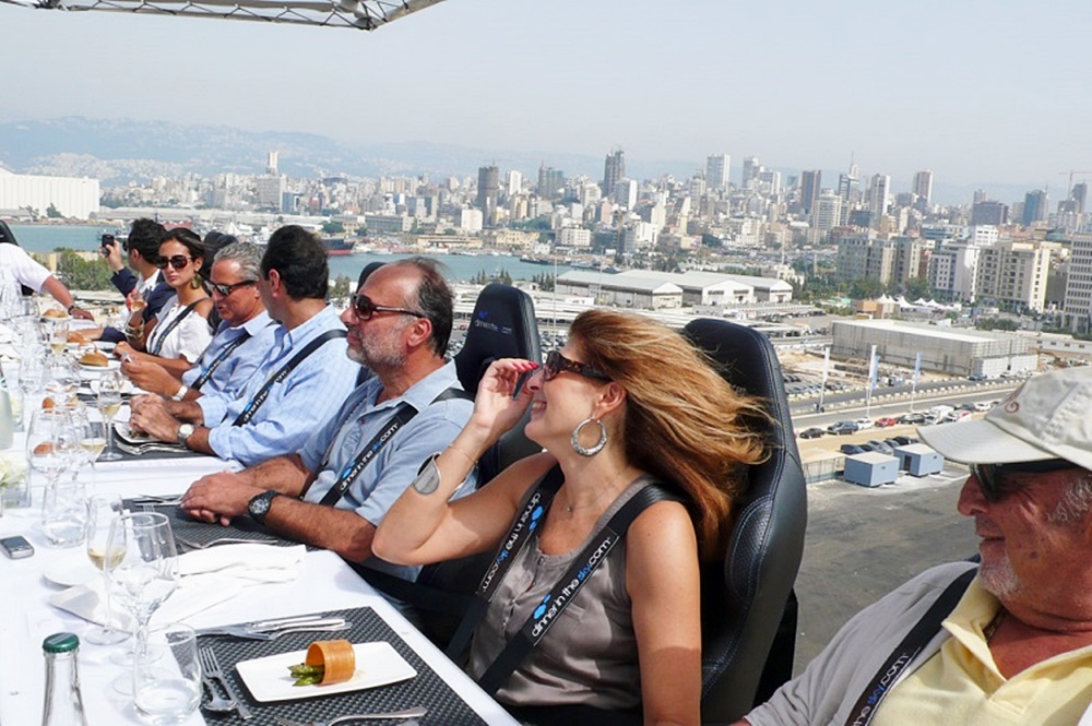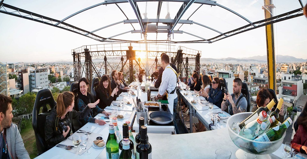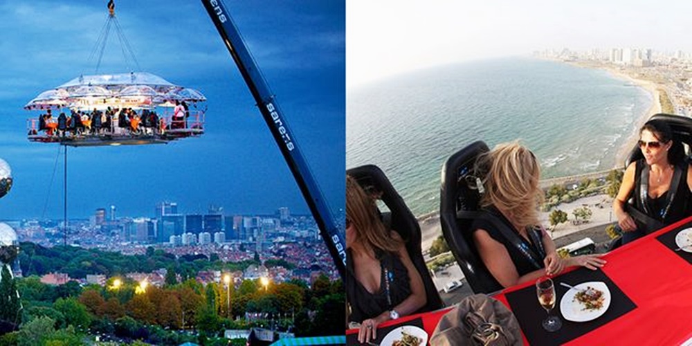 마치 놀이기구 같아 보이는 이 곳. 바로 '디너 인 더 스카이(Dinner in the Sky)'입니다. 디너 인 더 스카이에서 식사를 하기 위해서는 설치된 의자에 앉아 안전벨트를 매야 하는데요. 그러면 크레인이 의자와 테이블을 서서히 끌어올립니다. 레스토랑의 특성상 손님뿐만이 아니라 셰프와 서버도 함께 올라가며 모든 요리는 눈앞에서 이루어진다고 하네요. 이 레스토랑은 360도 회전이 가능한데요. 손님들은 1시간 30분 동안 식사를 하며 전경을 360도 바라볼 수 있습니다. 이 레스토랑은 전 세계를 다니며 짧게는 2일, 길게는 6개월가량 팝업 레스토랑의 형태로 운영되고 있습니다.