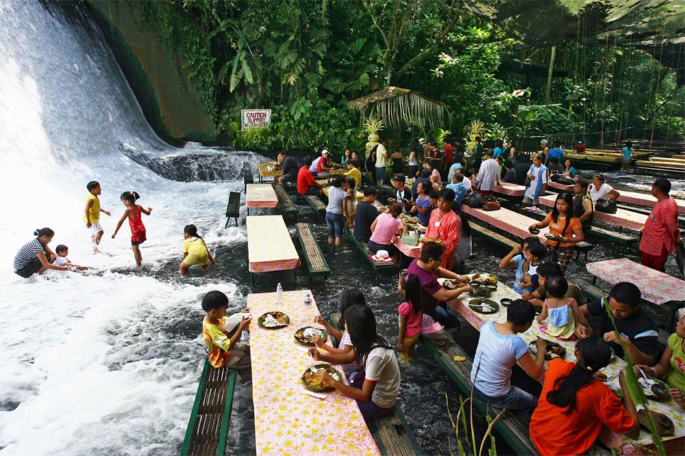 폭포 바로 앞에서 식사를 할 수 있는 이곳은 바로 필리핀 산파블로에 위치한 '라바씬 폭포 레스토랑(Labassin Waterfall Restaurant)'입니다. 이곳은 매우 자연적인 곳이며 이곳에서는 필리피 전통 음식을 즐길 수 있죠. 이곳에서는 시원한 폭포 속에 발을 담그고 식사를 할 수 있는데요. 폭포는 천연 에어컨 역할을 하기에 덥고 습한 필리핀 기후에서는 이 보다 더 좋은 환경이 없을 것 같네요.