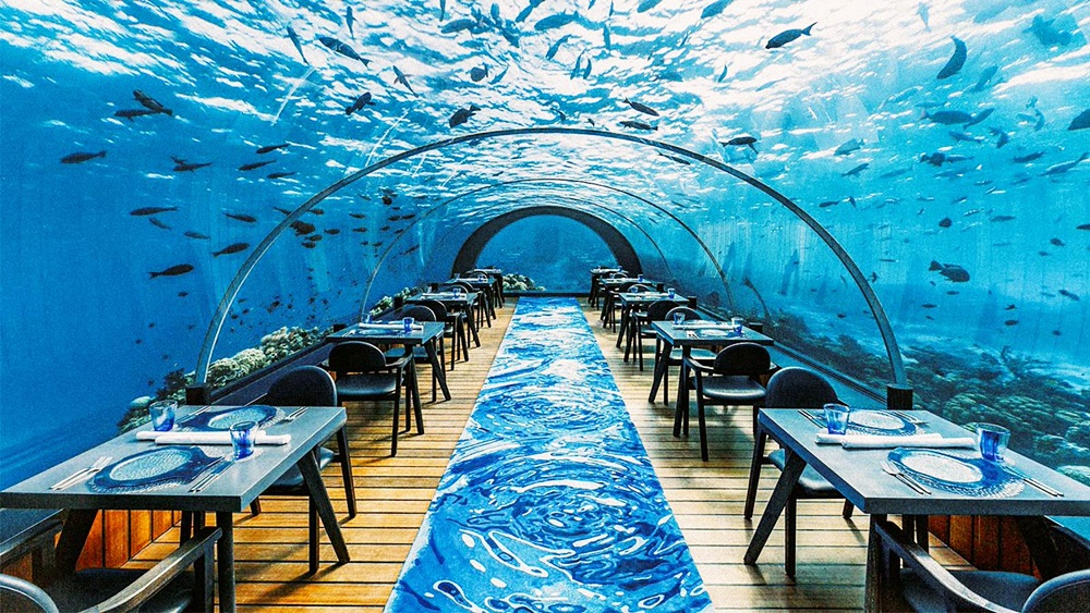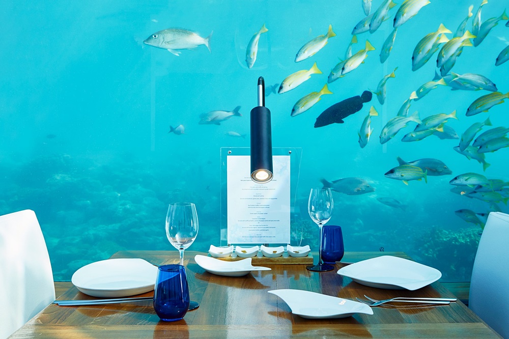 물고기와 다양한 바다 생물들로 둘러싸인 물속에서 식사하는 것. 상상이 되시나요? 이를 실제로 구현한 레스토랑이 있는데요. 바로 몰디브에 위치한 '이타 레스토랑(Ithaa Restaurant)'입니다. 이 레스토랑은 바다 밑 5미터 아래에 위치하고 있으며, 이에 밝고 아름다운 산호 전경을 제공하고 있습니다.