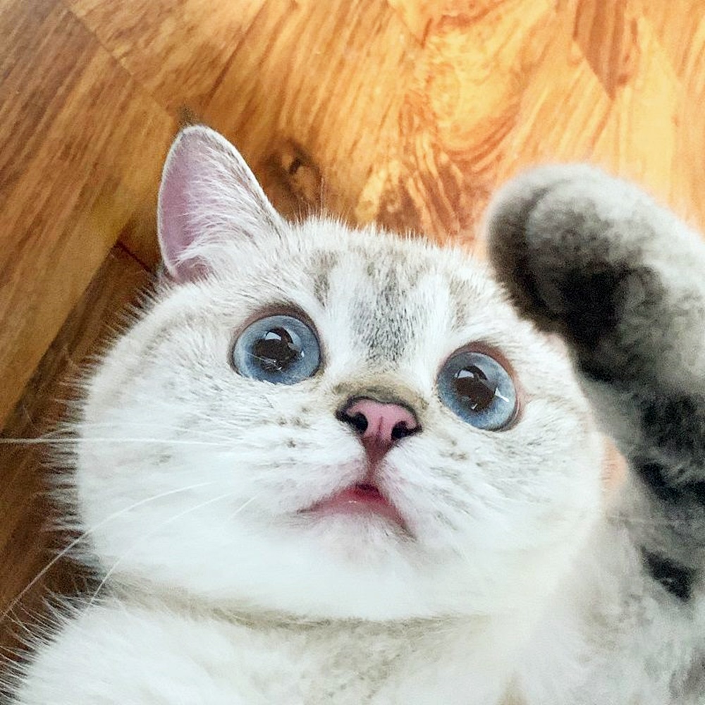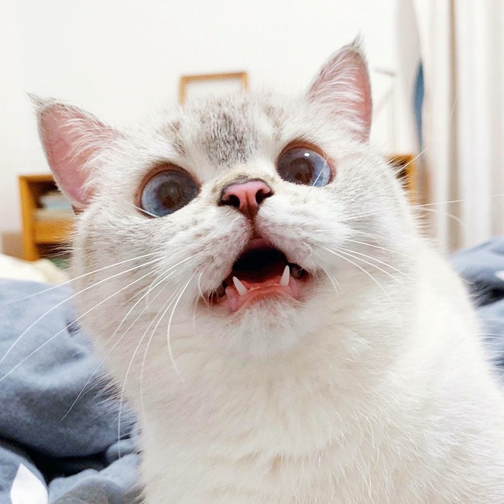 나나는 브리티시 숏헤어 특유의 동그란 얼굴을 가지고 있는데요. 크고 파란 눈, 그리고 풍부한 표정으로 유명해졌습니다. 특히 유명한 것은 나나가 충격 받았을 때의 모습인데요. 마치 만화에서 금방 튀어나왔다고 해도 손색없을 정도의 표정이네요.