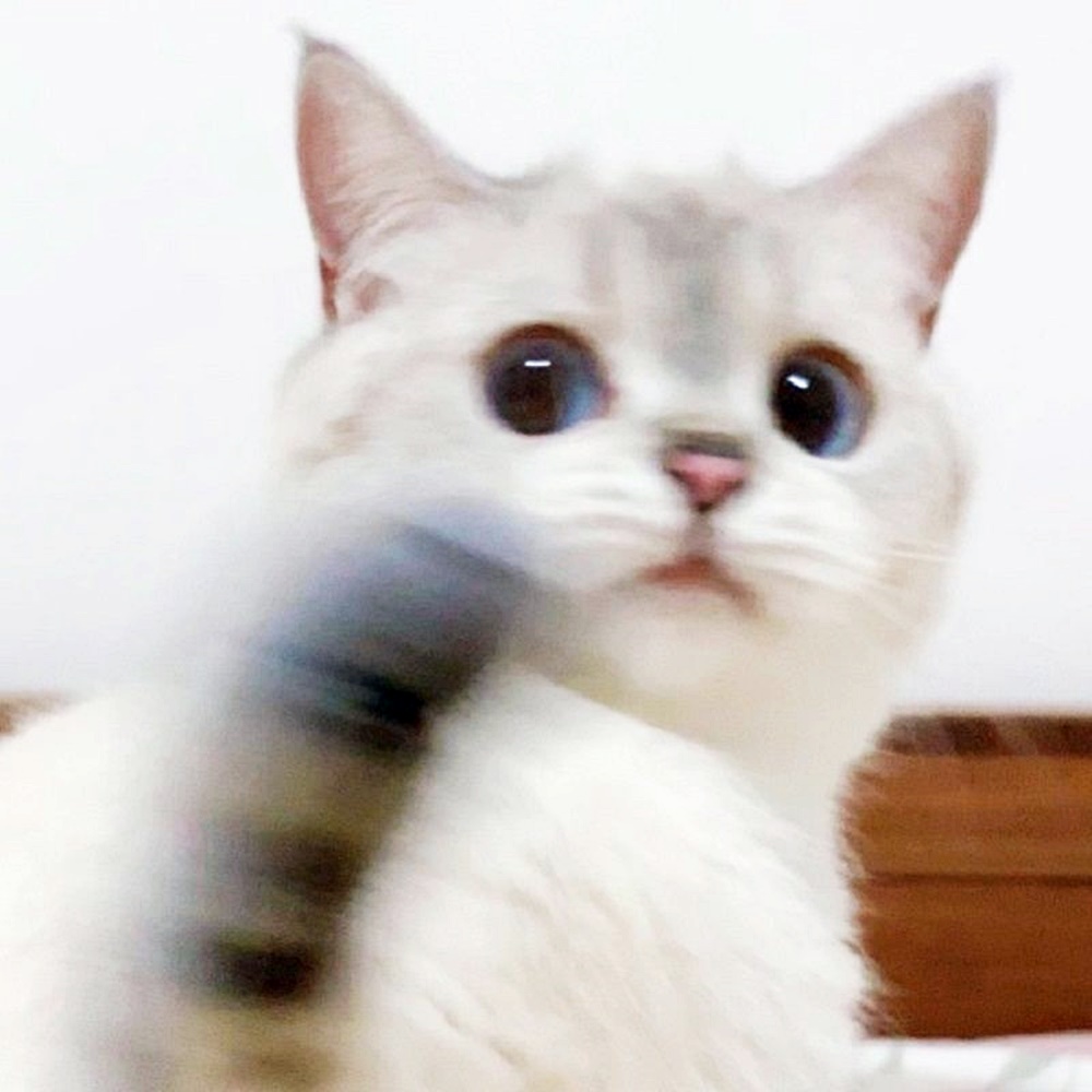 나나는 브리티시 숏헤어 특유의 동그란 얼굴을 가지고 있는데요. 크고 파란 눈, 그리고 풍부한 표정으로 유명해졌습니다. 특히 유명한 것은 나나가 충격 받았을 때의 모습인데요. 마치 만화에서 금방 튀어나왔다고 해도 손색없을 정도의 표정이네요.