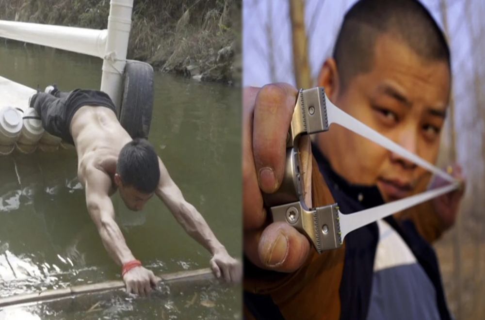사실 황하이무는 푸젠성 시골마을 출신으로 2016년 당시 너무 가난해 운동 기구를 사거나 헬스장에 등록할 수 없었다고 하는데요. 그럼에도 운동으로 신체를 단련시키고 싶었고, 자신이 살고 있는 시골 마을의 지형지물을 이용하거나 집 뒷산에 올라가 나무를 타는 등 자신만의 방식으로 창의적인 운동 방법을 고안했습니다. 사실 그는 전문적으로 운동 기구를 만들지 않았기에 부상도 있었다고 하는데요. 그럼에도 포기하지 않고 계속해서 운동을 이어가고 있습니다.