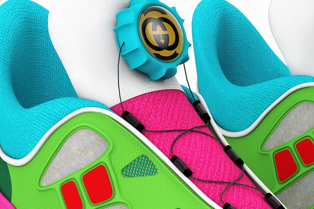 이 운동화의 청키한 파란색 솔과 다이얼에는 구찌의 더블G 로고가 있고, 로우탑도 하이탑도 아닌 하이브리드 디자인과 형광 초록색 어퍼 디자인이 특징적인 운동화인데요. 이 운동화에는 미켈레가 가장 좋아하는 숫자인 '25'를 넣어 '구찌 버추얼 25(Gucci Virtual 25)'라는 이름이 붙었습니다.