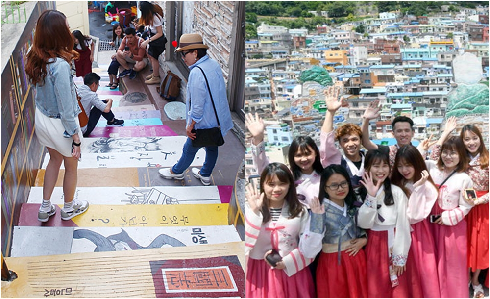 부산 감천동 일대 산비탈에 자리한 감천문화마을은 6.25 전쟁 이후 갈 곳 없는 피난민들이 하나둘 모여들며 생겨난 곳입니다. 이곳은 시간이 지나면서 낙후되었지만 2009년부터 마을 미술 프로젝트가 시작되며 활기를 띠기 시작했죠. 사하구에서는 예술가들과 협업해 마을 곳곳에 예술 작품을 설치하고 파스텔 색상의 계단식 집을 강조했습니다. 이후 박물관, 갤러리 등의 문화공간이 자리하며 '지붕 없는 미술관'으로도 불렸죠. 외국인들의 방문도 많았는데요. 2019년 300만 명의 방문객들 중 약 60%가 외국인이었다고 합니다.