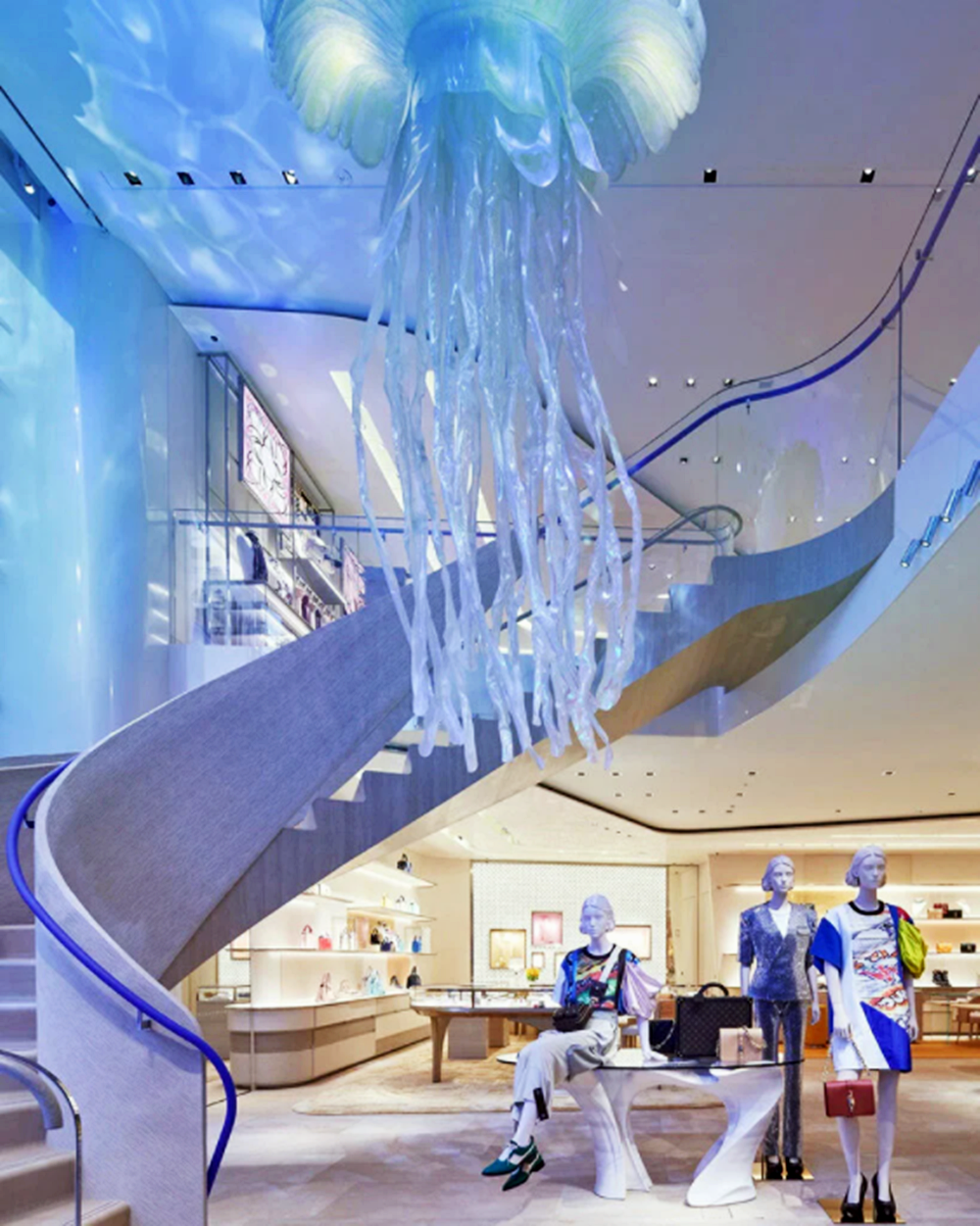 이 루이비통 매장에서는 여성과 남성의 레디 투 웨어, 가죽 콜렉션, 액세서리, 주얼리, 시계, 향수, 아이코닉 트래블 세트 등을 전시하고 있어 많은 사람들의 발길을 모으고 있습니다.