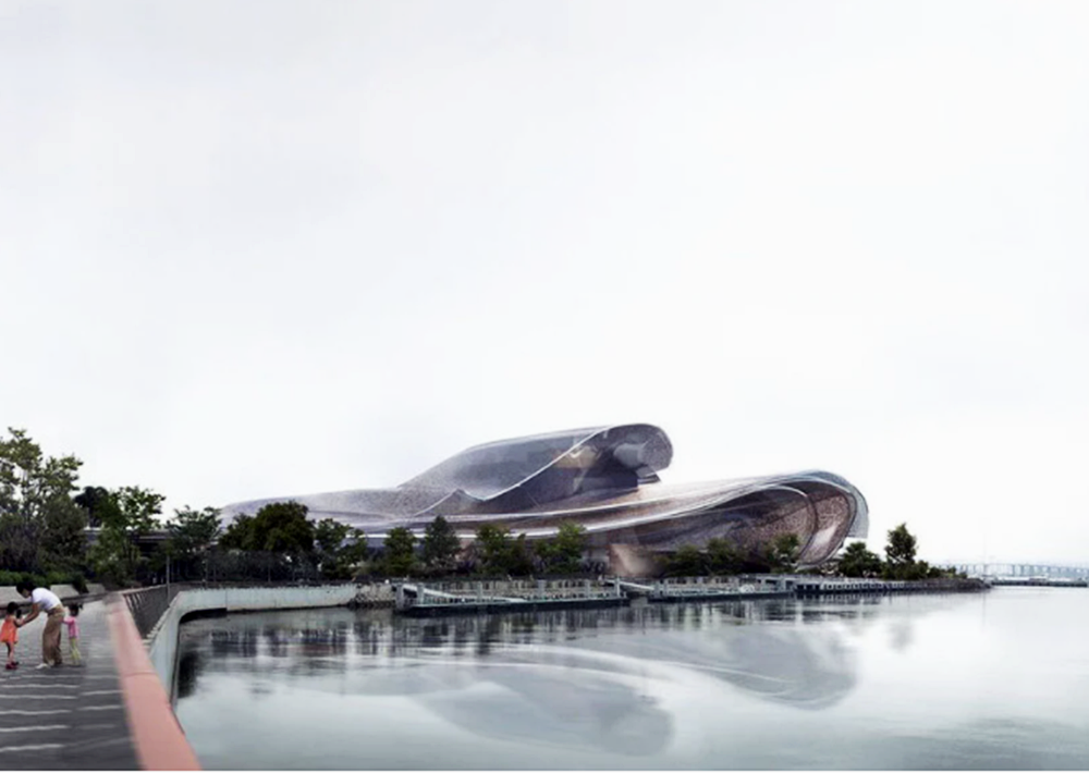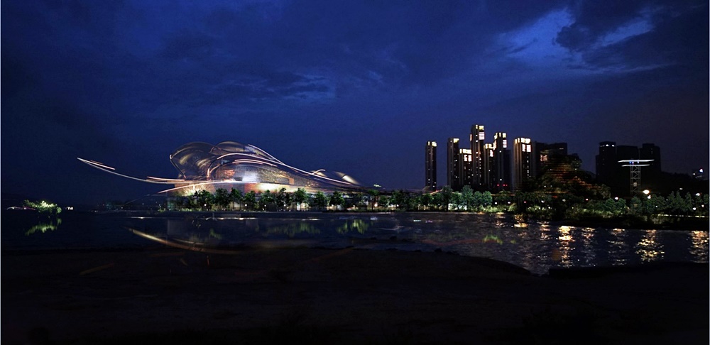 과연 공모 우승작은 어떤 모습일까요? 마치 바다를 향해 치고 있는 파도처럼 유려한 곡선이 눈에 띄는 건축물인데요. 반짝이며 시시각각 색이 변하는 외장 또한 특징 중의 하나입니다. 이 건축물에는 2,300석 규모의 오페라홀 이외에도 1,800석 규모의 공연장, 800석 규모의 오페라홀, 400석 규모의 복합 극장등이 포함되어 있다고 하네요.
