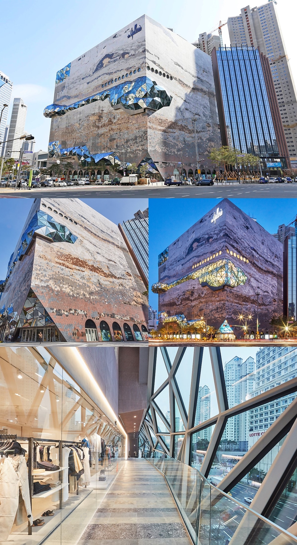 지난해 이맘때 쯤 개장해 큰 화제가 되었던 백화점 갤러리아 광교. 이곳도 더 현대 서울만큼이나 주목받았던 곳입니다. 더 현대 서울이 내부 정원으로 주목을 받았다면 갤러리아 광교는 독특한 외관으로 많은 언론과 네티즌들의 관심을 받았죠. 이곳은 세계적인 건축가 렘 콜하스의 건축사무소 OMA가 설계했는데요. 이에 쇼핑객, 나들이객 뿐만이 아니라 디자인과 건축에 관심이 있는 사람들 또한 이곳을 방문하고 있습니다. 갤러리아 광교는 네모난 석재 모양의 기본 디자인에 1,451장의 삼각 유리창을 둘러 마치 자연 속에 파묻힌 원석같은 느낌을 자아내고 있네요.