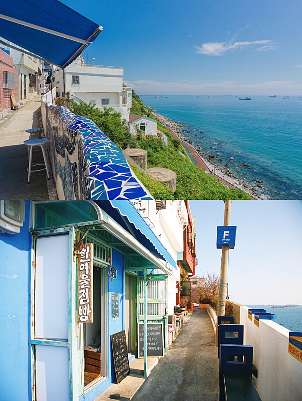 부산의 산토리니라 불리는 흰여울 문화마을. 이곳은 영화 변호인의 촬영지이기도 합니다. 이곳에는 아기자기한 소품들과 벽화가 있는데요. 이에 감성 사진을 찍은 후 바다가 보이는 카페에서 여유로운 시간을 보내면 좋습니다.