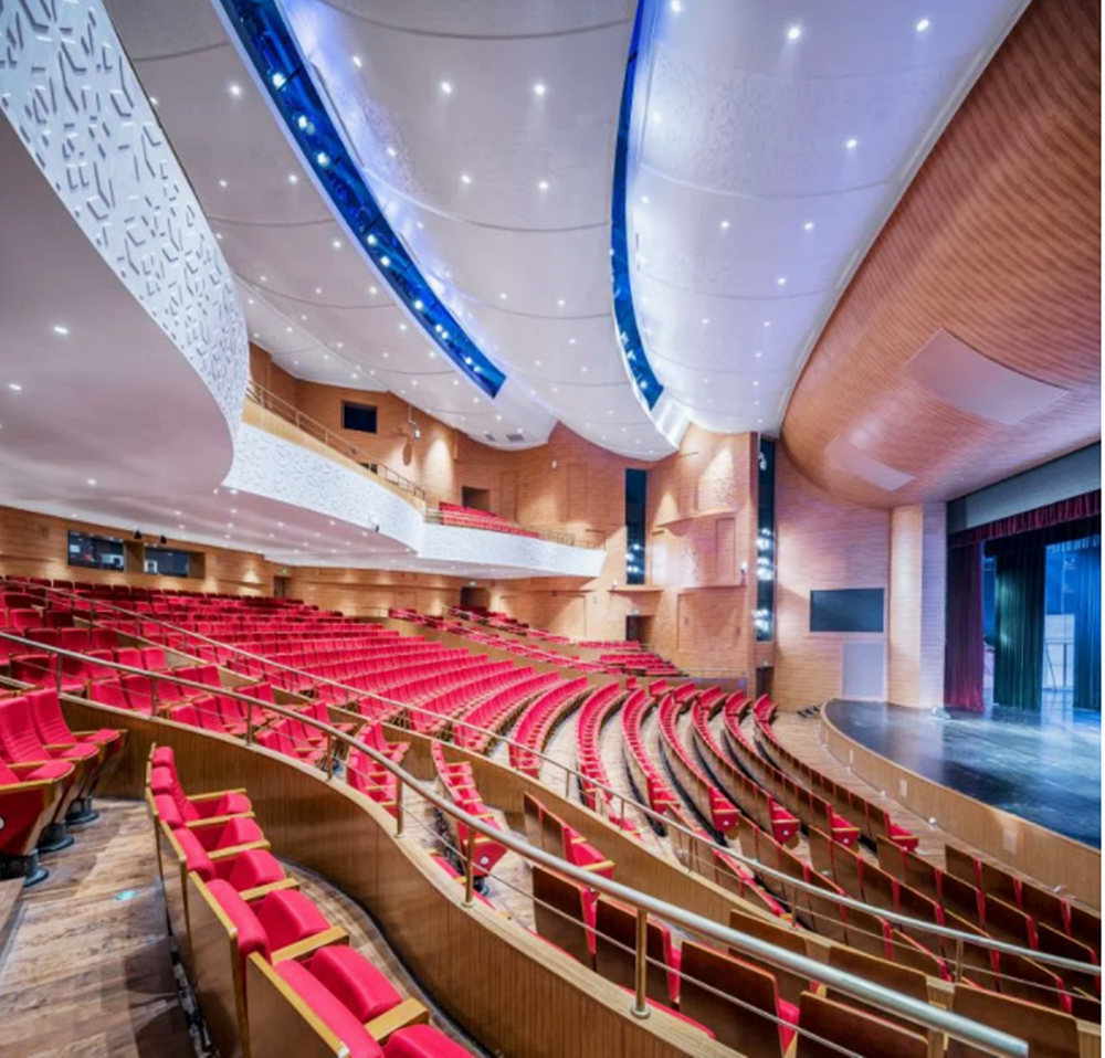 이 극장은 1,052명의 관객을 수용할 수 있으며 무대의 아래쪽에는 100명 규모의 교향악단을 수용할 수 있습니다. 또한 무대는 한자 品의 형태로 되어 있죠. 이에 뮤지컬, 오페라, 발레, 드라마 및 연극 공연 등을 올릴 수 있어 다용도로 활용될 수 있습니다.