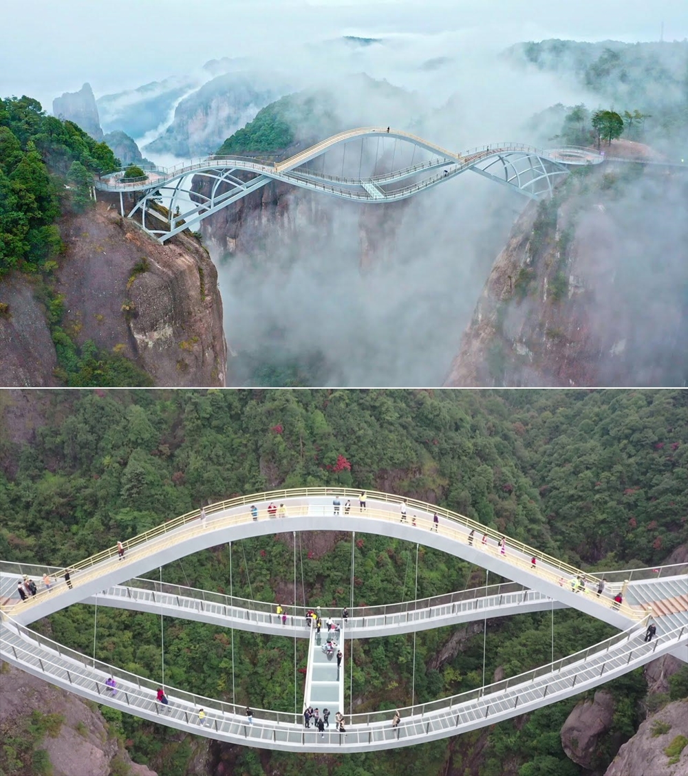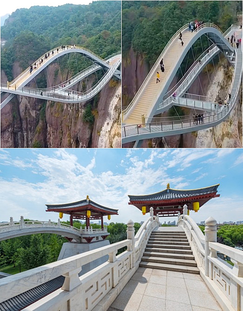 그리고 얼마 전 또 하나의 다리가 들어서며 큰 화제가 되고 있습니다. 바로 '루이 다리'입니다. 루이 다리는 중국 동부의 저장성에 있는 곳인 타이저우의 선셴쥐(신선거) 경관지구에 위치하고 있습니다. 선셴쥐는 2015년 중국 국가 5A급 관광지로 선정된 것인데요. 웅장한 산세와 가파른 절벽, 깊은 협곡의 풍경이 매우 아름다운 곳입니다. 그리고 이 다리는 선셴쥐 계곡을 가로지르고 있죠.