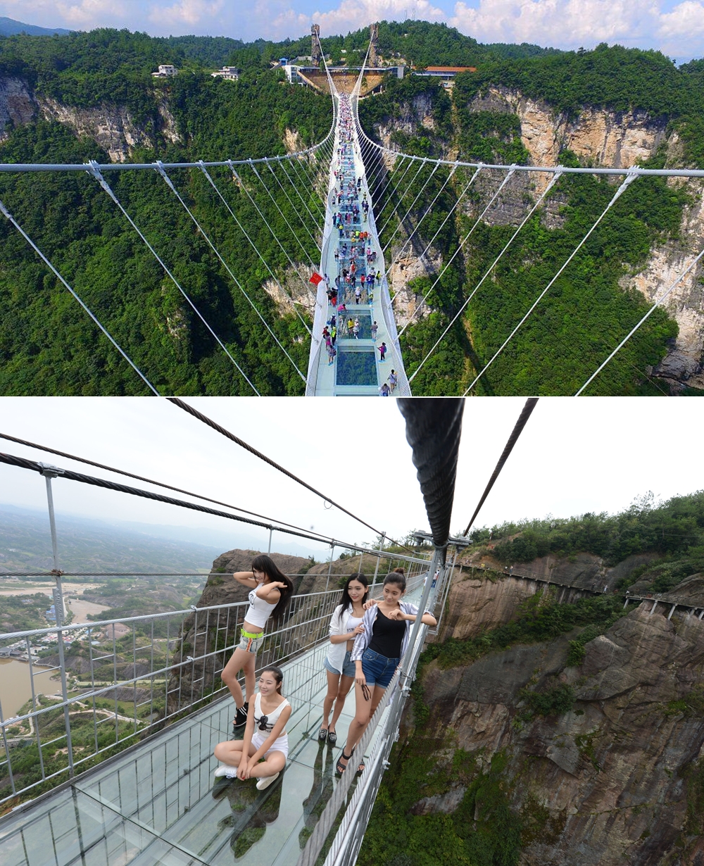 중국에는 기이한 건축물들이 많이 있습니다. 도시인들의 시선을 잡아끄는 초호화 고층 빌딩, 세계의 다양한 랜드마크를 똑같이 재현한 짝퉁 건물들, 그리고 중국 건축물에서 빠질 수 없는 것이 바로 '유리 다리'이죠. 지난 10년간 중국 전역에는 유리 다리가 건설되었는데요. 스릴을 좋아하는 중국인들의 마음을 단숨에 사로잡으며 최고의 관광지로 떠오르기도 했습니다.