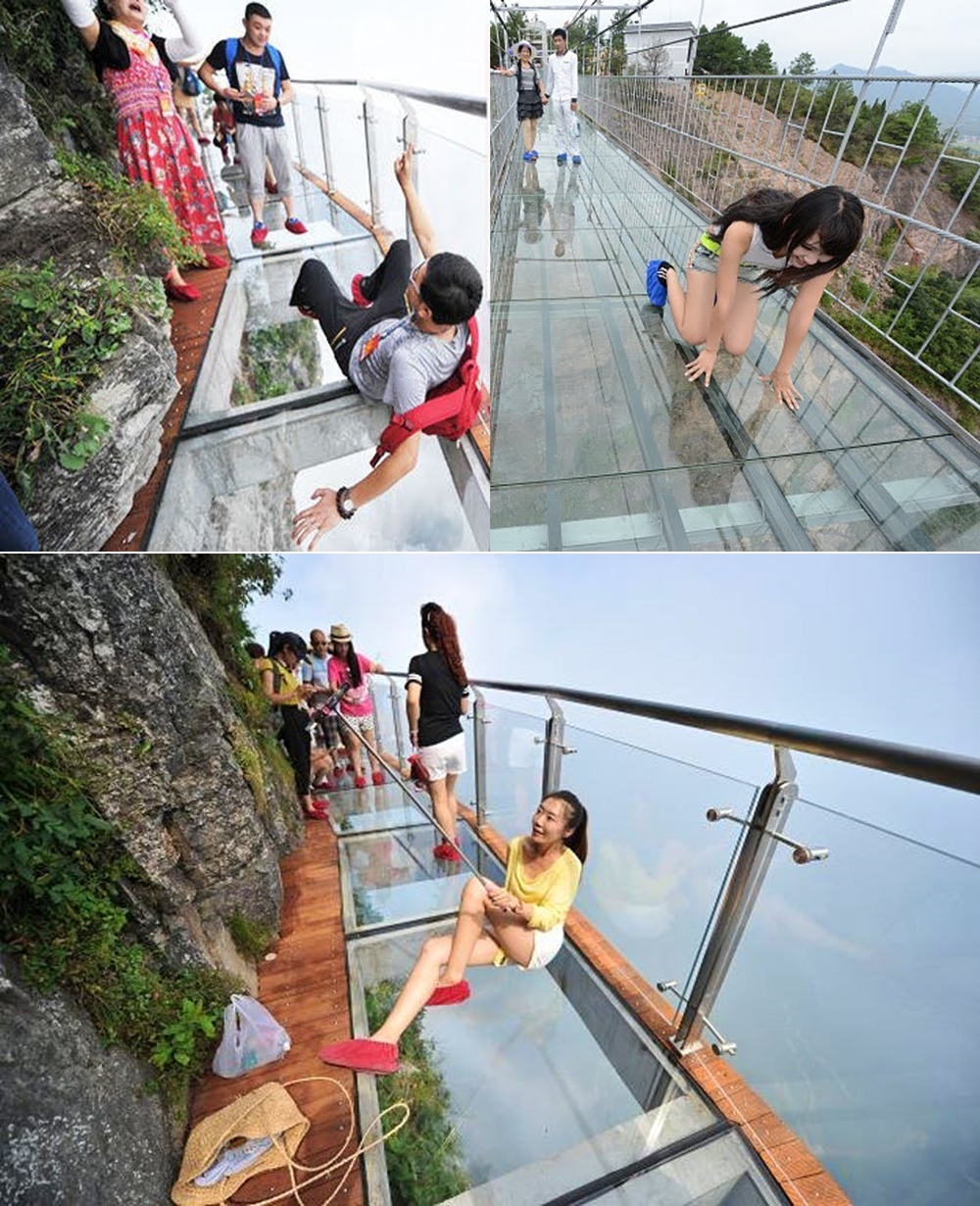 중국에는 기이한 건축물들이 많이 있습니다. 도시인들의 시선을 잡아끄는 초호화 고층 빌딩, 세계의 다양한 랜드마크를 똑같이 재현한 짝퉁 건물들, 그리고 중국 건축물에서 빠질 수 없는 것이 바로 '유리 다리'이죠. 지난 10년간 중국 전역에는 유리 다리가 건설되었는데요. 스릴을 좋아하는 중국인들의 마음을 단숨에 사로잡으며 최고의 관광지로 떠오르기도 했습니다.