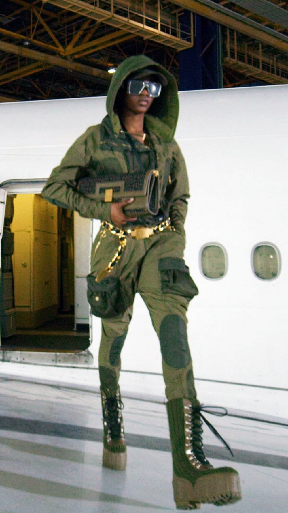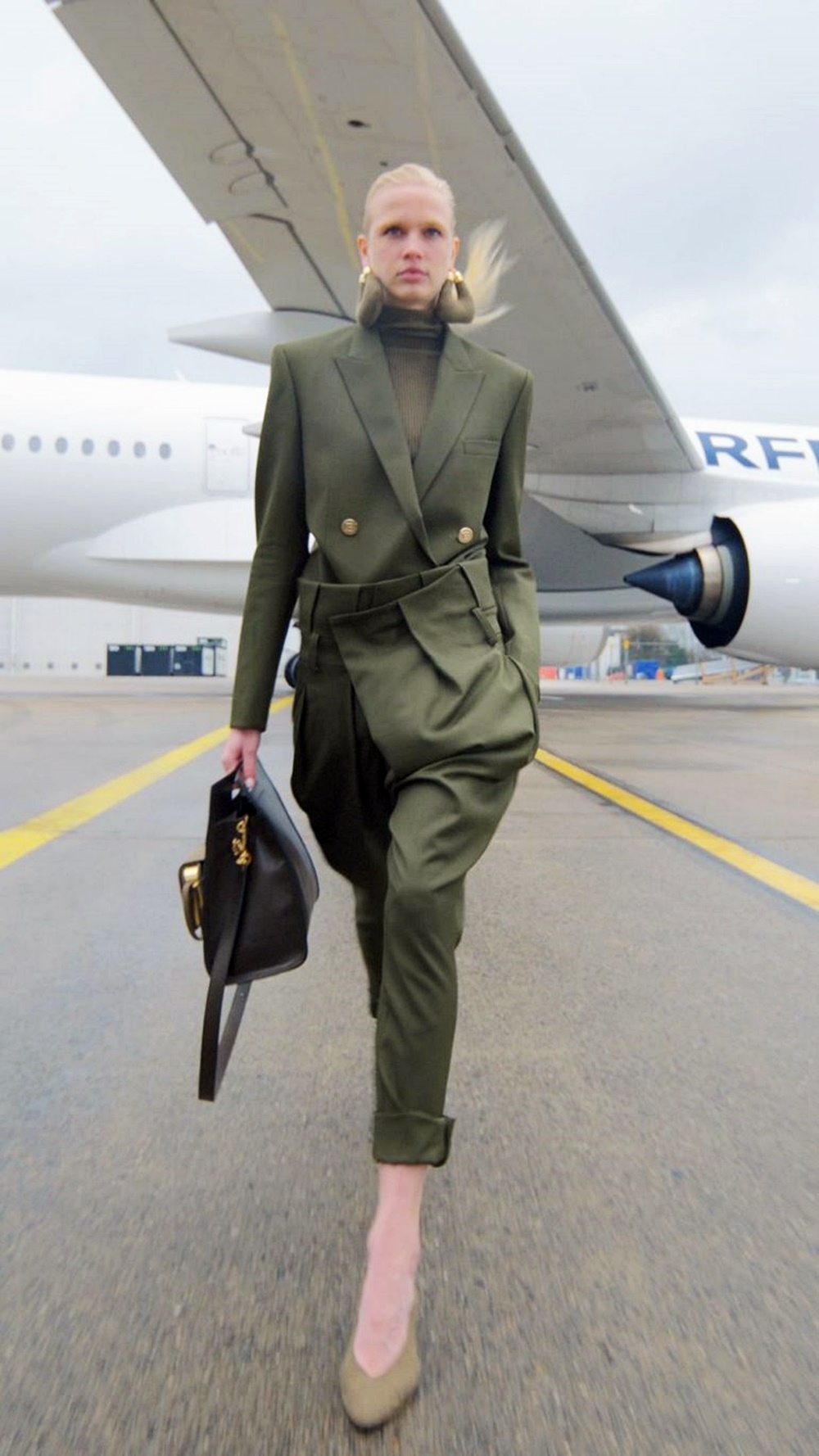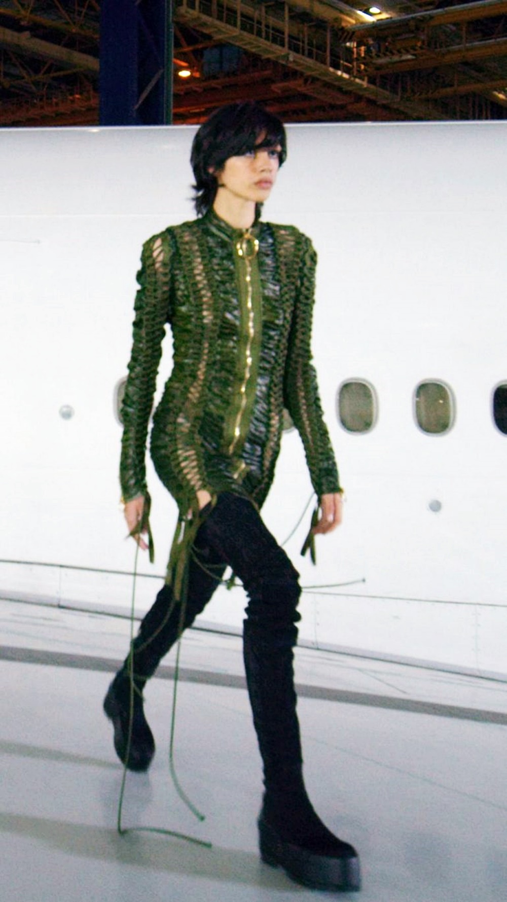 발망의 이번 컬렉션 또한 패션쇼를 진행한 장소와 잘 어울렸습니다. 마치 여행을 떠나는 사람처럼 편안한 플랫폼 부츠가 등장해 모델들은 편안하게 걸었고, 스키니 핏의 바지와 오버사이즈의 상의로 마치 비행기 안의 추운 기온을 보완해주는 것 같았습니다. 가방은 대부분은 넉넉한 사이즈였고, 백팩과 여행 트렁크가 등장하며 런웨이 장소가 무색하지 않도록 잘 어울리는 모습을 보였네요.