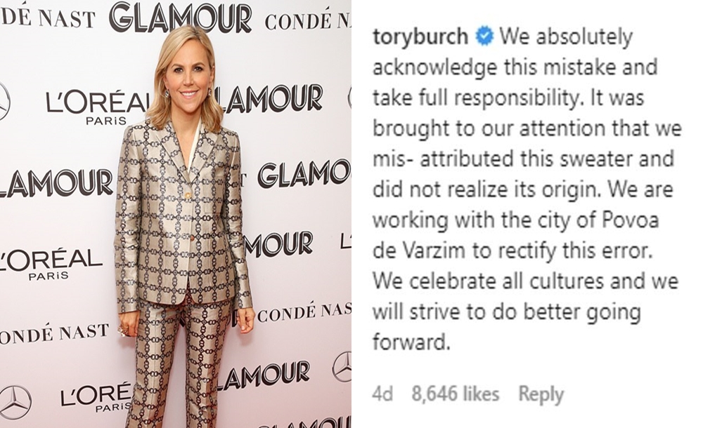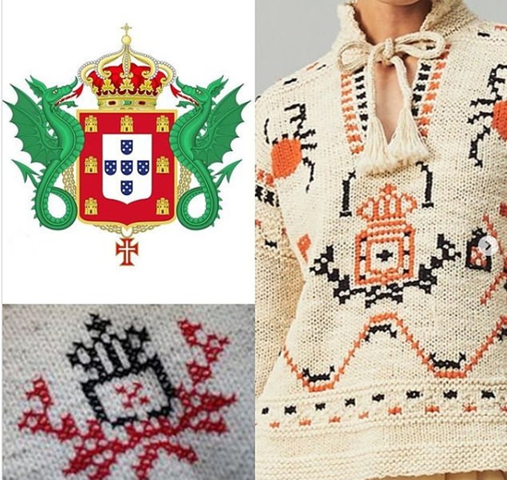 토리 버치 스웨터가 차용한 디자인은 1800년대부터 포르투갈의 뱃사람들이 입던 전통의상과 비슷하다는 주장이 나왔습니다. 특히 이 의상은 포르투갈 북부에 있는 해안 도시인 포보아드바르징에서 주로 입었는데, 이곳에 살던 뱃사람들과 뱃사람들의 가족들은 특별한 날, 혹은 순례길을 떠날 때 이 옷을 입었고, 이제는 이 옷에 있는 자수가 포보아드바르징의 상징이 되었으며, 포보아드바르징의 관광기념품에도 사용되고 있습니다.