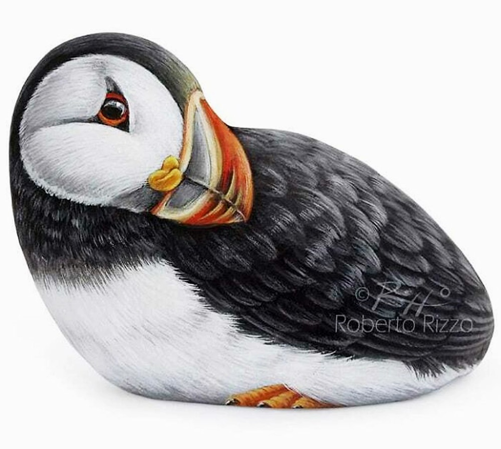 그가 돌멩이에 그리는 것은 바로 동물인데요. 고양이, 고슴도치, 부엉이, 펭귄 등을 사실적으로 묘사하며 큰 화제가 되고 있죠. 또한 많은 사람들은 자신의 고양이나 강아지를 돌멩이에 그려달라고 의뢰를 하기도 합니다. 로베르토 리조는 1996년부터 돌멩이에 그림을 그려왔다고 하는데요. 무려 25년이나 이어온 그의 그림 실력을 함께 만나보도록 하겠습니다