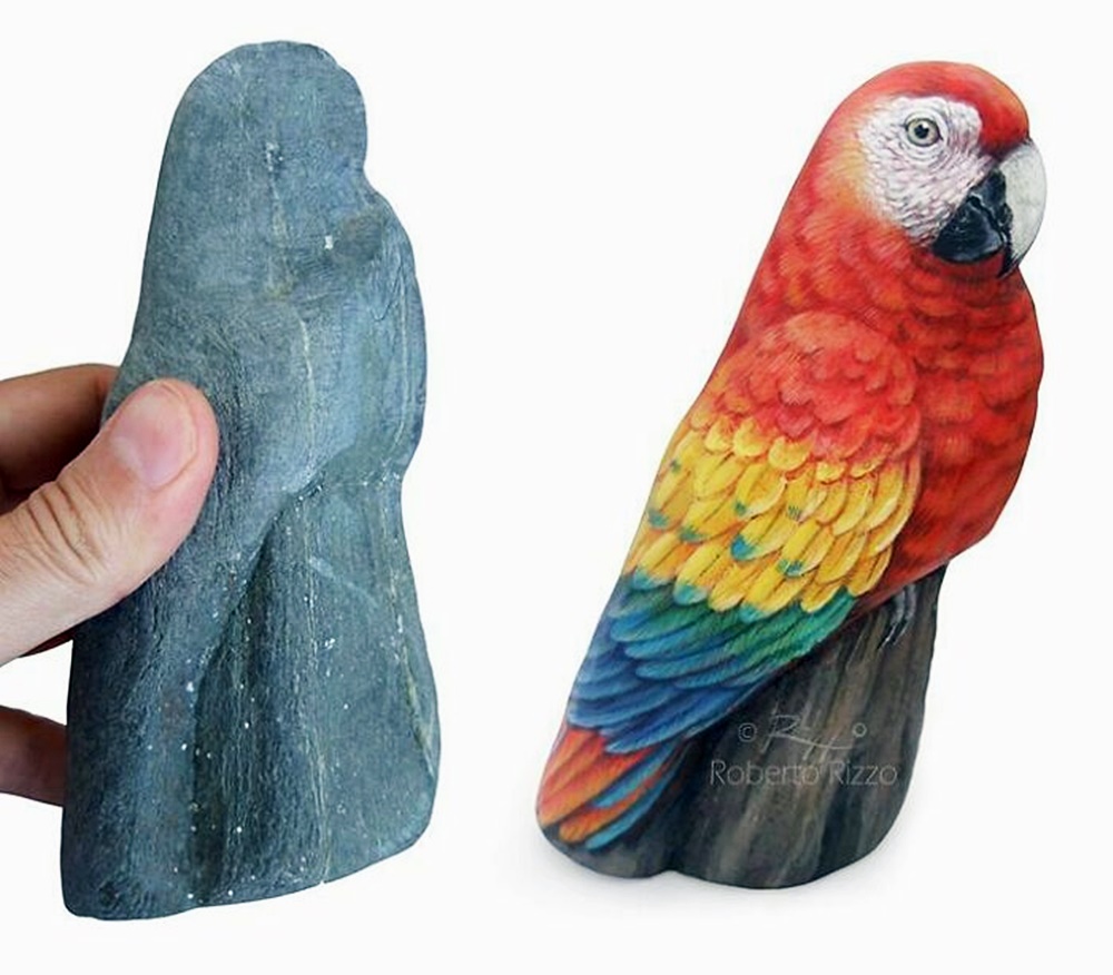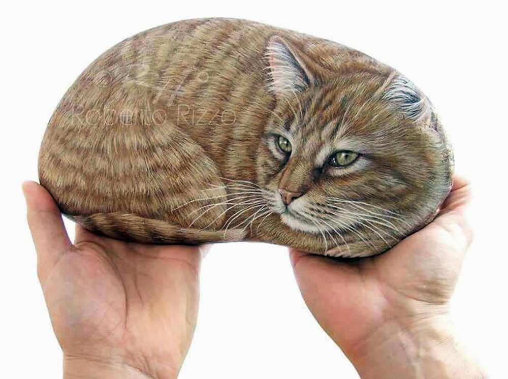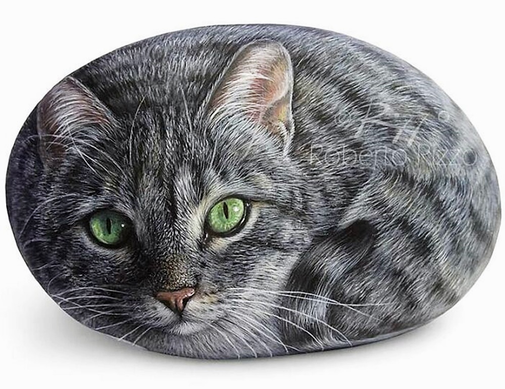 그가 돌멩이에 그리는 것은 바로 동물인데요. 고양이, 고슴도치, 부엉이, 펭귄 등을 사실적으로 묘사하며 큰 화제가 되고 있죠. 또한 많은 사람들은 자신의 고양이나 강아지를 돌멩이에 그려달라고 의뢰를 하기도 합니다. 로베르토 리조는 1996년부터 돌멩이에 그림을 그려왔다고 하는데요. 무려 25년이나 이어온 그의 그림 실력을 함께 만나보도록 하겠습니다