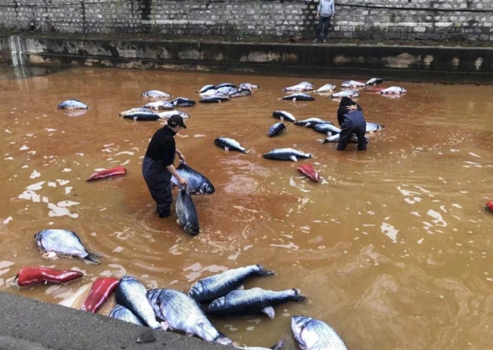 브라더너트는 이 문제를 공연 예술 프로젝트로 만들기로 했습니다. 바로 당국과 대중의 관심을 끌기 위해서였죠. 그는 이 프로젝트를 도와줄 자원봉사자들을 모집했고, 이들은 장난감 물고기와 고추를 구입했습니다. 그리고 이들은 3월 27일 허리까지 오는 황토색 웨양강 물에 걸어 들어가 이 장난감을 버렸죠. 그리고 이 과정은 모두 촬영되었고 사진과 동영상은 SNS에 올라갔습니다.