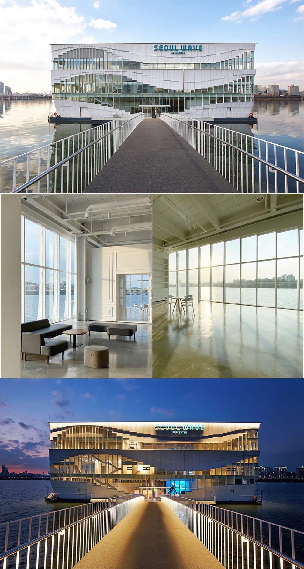 지난 2019년 문을 연 서울웨이브아트센터는 한강에 둥둥 떠있는 문화공간으로 큰 화제가 되었습니다. 그리고 2020년에는 10월 이곳에 스타벅스가 문을 열었는데요. 서울웨이브아트센터가 문을 열 때보다 더 큰 화제가 되었죠. 이곳은 1층과 2층으로 이루어져 있는데요. 1층의 왼쪽 벽면이 통유리로 되어 있어 한강 뷰가 보이는 것이 특징입니다. 외관 또한 시선을 사로잡습니다. 멀리서 보면 마치 유람선 한척이 떠있는 것 같은 모습이네요. 해가 지면 이 건물은 더욱 빛을 발하는데요. 멋진 조명으로 인해 특별한 분위기를 자아내고 있습니다.