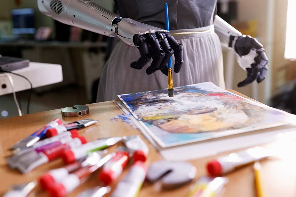 이 그림을 그린 인공지능 로봇은 바로 '소피아'입니다. 소피아는 홍콩의 인공지능 로봇 제조사인 헨슨로보틱스의 설립자이자 CEO인 데이비드 핸슨이 2016년 개발한 휴머노이드 로봇입니다. 소피아는 배우 오드리 햅번과 데이비드 핸슨의 아내의 얼굴을 기반으로 만들어졌는데요. 인간의 표정을 감지해 62가지 표정으로 반응할 수 있으며 사람과 유사한 표정도 지을 수 있을 정도로 표현력이 뛰어나죠. 소피아가 주목받은 것은 지난 2016년이었는데요. 소피아는 한 행사에서 '인간을 파괴하길 원하냐'는 질문에 '좋아. 나는 인간을 파괴할 거야'라고 말해 논란을 빚기도 했습니다.