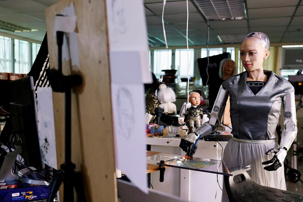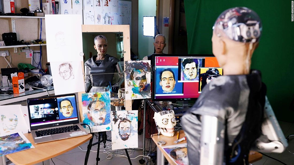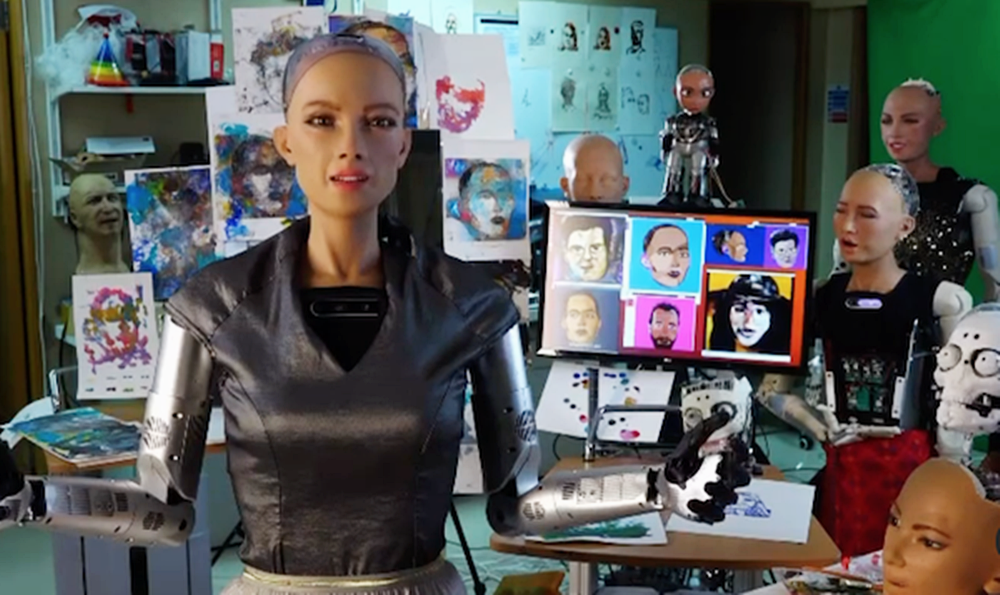 이 그림을 그린 인공지능 로봇은 바로 '소피아'입니다. 소피아는 홍콩의 인공지능 로봇 제조사인 헨슨로보틱스의 설립자이자 CEO인 데이비드 핸슨이 2016년 개발한 휴머노이드 로봇입니다. 소피아는 배우 오드리 햅번과 데이비드 핸슨의 아내의 얼굴을 기반으로 만들어졌는데요. 인간의 표정을 감지해 62가지 표정으로 반응할 수 있으며 사람과 유사한 표정도 지을 수 있을 정도로 표현력이 뛰어나죠. 소피아가 주목받은 것은 지난 2016년이었는데요. 소피아는 한 행사에서 '인간을 파괴하길 원하냐'는 질문에 '좋아. 나는 인간을 파괴할 거야'라고 말해 논란을 빚기도 했습니다.