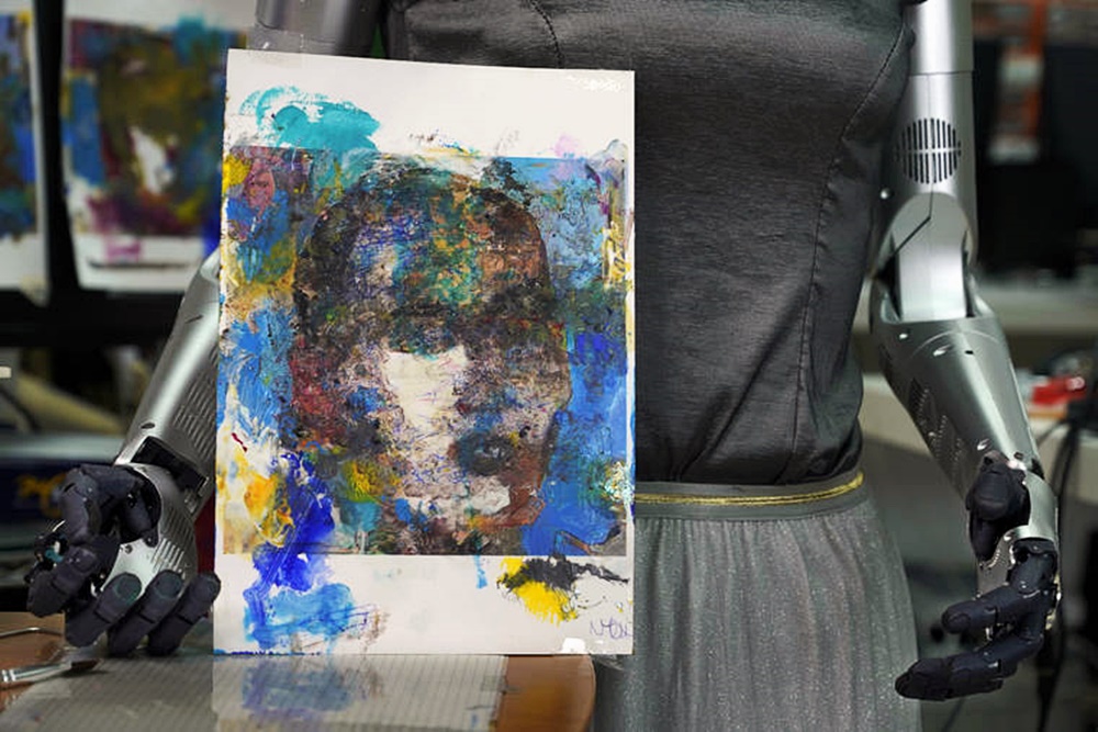 소피아는 이탈리아 미술가인 안드레아 보나체토와 협력해 이 작품을 완성했습니다. 안드레아 보나체토는 소피아의 자화상을 그렸고, 이후 소피아는 안드레아 보나체트의 화법을 학습했고, 이 기법에 따라 자신의 초상화를 다시 그린 것이었죠. 작품 제작에는 핸슨 로보틱스의 엔지니어들도 참여한 것으로 알려져 있습니다. 결국 소피아는 12초짜리 MP4 파일과 디지털 자화상 작품을 제작했습니다. 이후 프린팅 된 작품에 붓을 사용해 덧칠을 하기도 했죠.