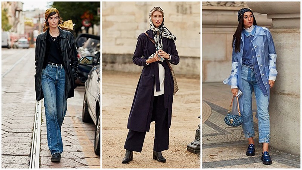50년대에서 60년대에 유행하던 헤드 스카프가 다시 돌아왔습니다. 헤드 스카프 중에서도 플로럴 모티프 또는 복잡한 패턴이 있는 디자인이 특히 유행이죠. 헤드 스카프를 착용할 때는 턱 밑으로 느슨하게 매듭을 짓거나 목 뒤편으로 스카프를 넘겨 스타일링할 수 있습니다. 마치 그레이스 켈리가 된 것 같은 느낌을 받을 수 있을 것 같네요.