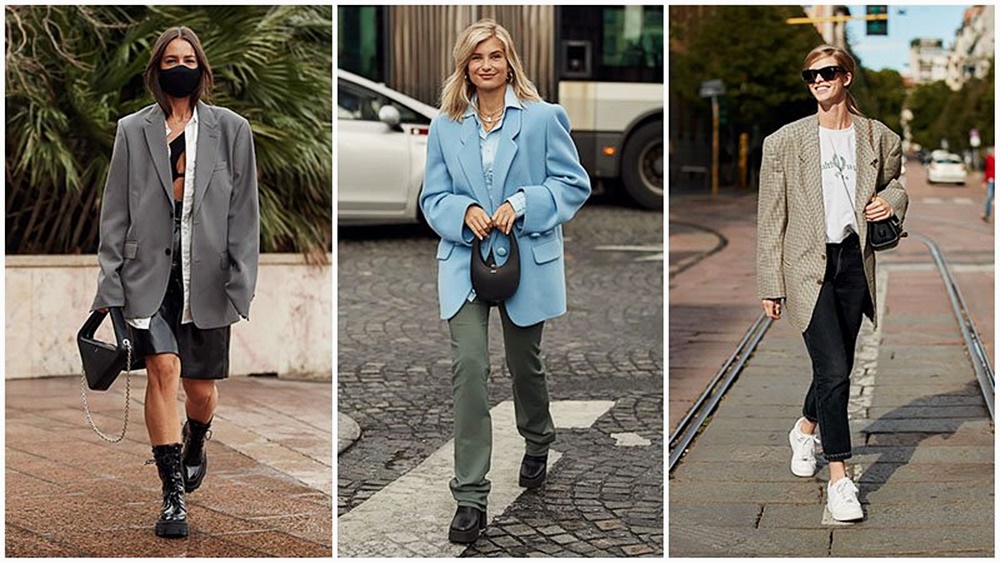 80년대를 풍미했던 오버사이즈 재킷이 레트로 열풍을 타고 다시 돌아왔습니다. 특히 이번 시즌에는 숄더 패드를 더해 어깨를 강조하는 디자인이 유행인데요. 이 재킷에 일자바지나 가죽 반바지, 혹은 바이커 쇼츠 등을 입어 레트로룩을 완성할 수 있습니다. 특히 유행하는 컬러는 파우더 블루, 차콜, 그리고 뉴트럴 컬러입니다.
