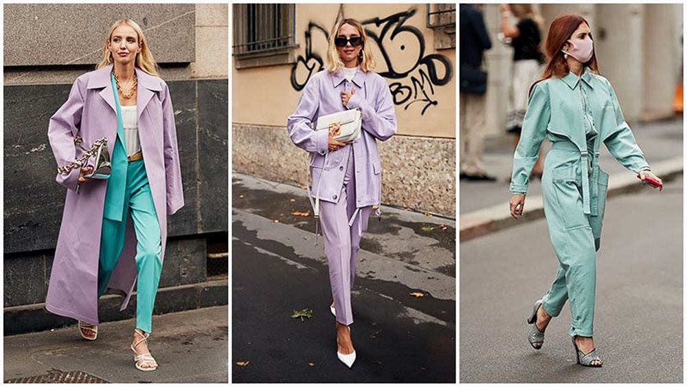 소르베는 아이스 디저트의 하나입니다. 소르베에는 과일즙이나 와인 등이 들어가는데요. 이에 은은한 색상이 특징적이죠. 2021년에는 이런 소르베에서 영감을 받은 파스텔 컬러가 유행 중인데요. 이 색상은 다양한 피부톤에 어울리고, 특히 여름에 매치하기 좋은 컬러이기도 합니다. 시원한 민트 컬러나 포도 소르베가 연상되는 연보라색 등이 눈에 띕니다.