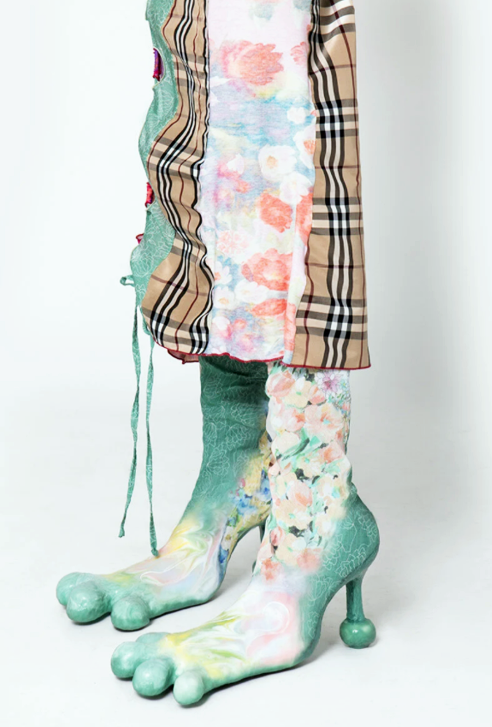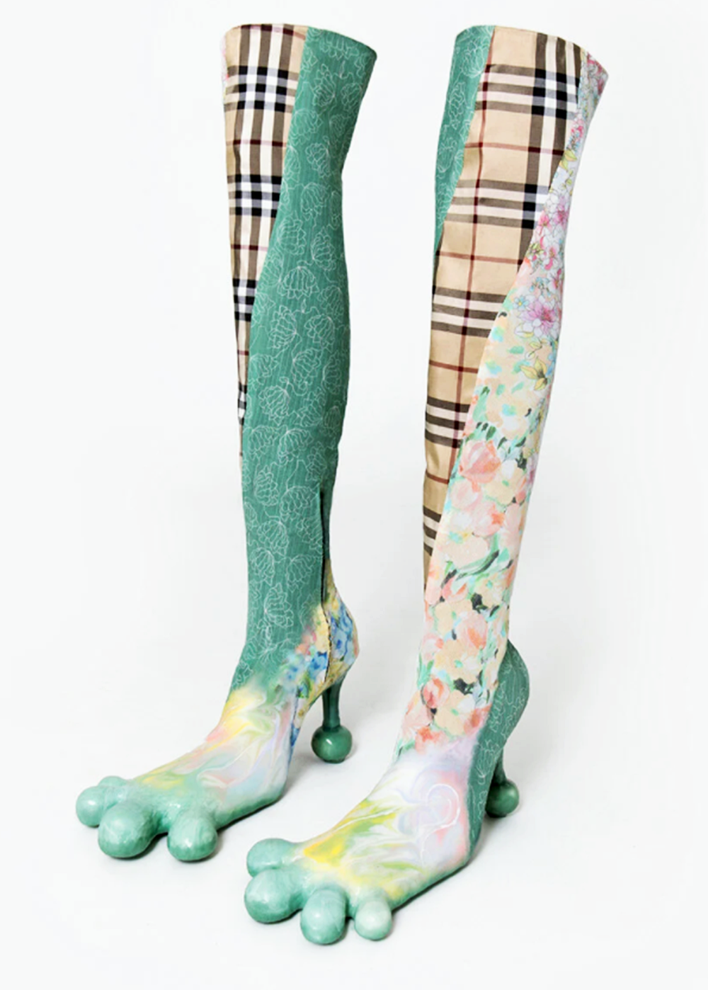 베아테 칼슨은 올해 초 이탈리아 패션 브래느인 아바바브(AVAVAV)와 손을 잡고 독특한 부츠를 제작했습니다. 바로 발가락이 네 개 달린 부츠였습니다. 색상 또한 독특했는데요. 피를 흘릴 것만 같은 레드 컬러와 마치 개구리 같은 그린 컬러였습니다. 그는 자신의 인스타그램을 통해 '일상 패션 용품과 아방가르드한 작품을 결합함으로써 현재와 미래를 연결하고 싶다'며 이 제품의 제작 의도를 밝히기도 했죠. 이 부츠는 디자인에 따라 우리 돈으로 약 80만 원에서 120만 원 정도였는데요. 모든 부츠의 전 사이즈가 품절된 바 있습니다.