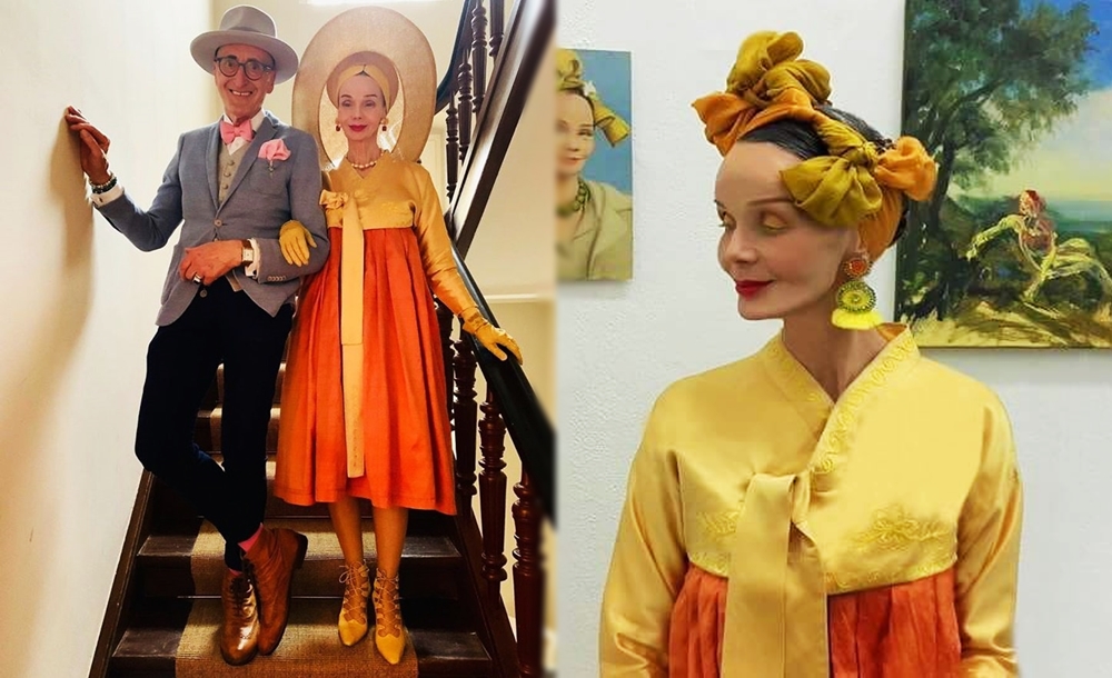 사실 이 부부의 패션은 몇 년 전부터 소문을 타며 '베를린 힙스터 부부'라는 별명도 얻게 되엇습니다. 귄터와 브릿 모두 모자와 장갑을 즐겨 착용하고, 특히 브릿 칸야는 화려한 헤드 피스와 세계 각국의 전통 의상을 자신만의 방식으로 트렌디하게 소화하고 있네요. 특히 브릿 칸야는 한복도 몇 벌 입었는데요.